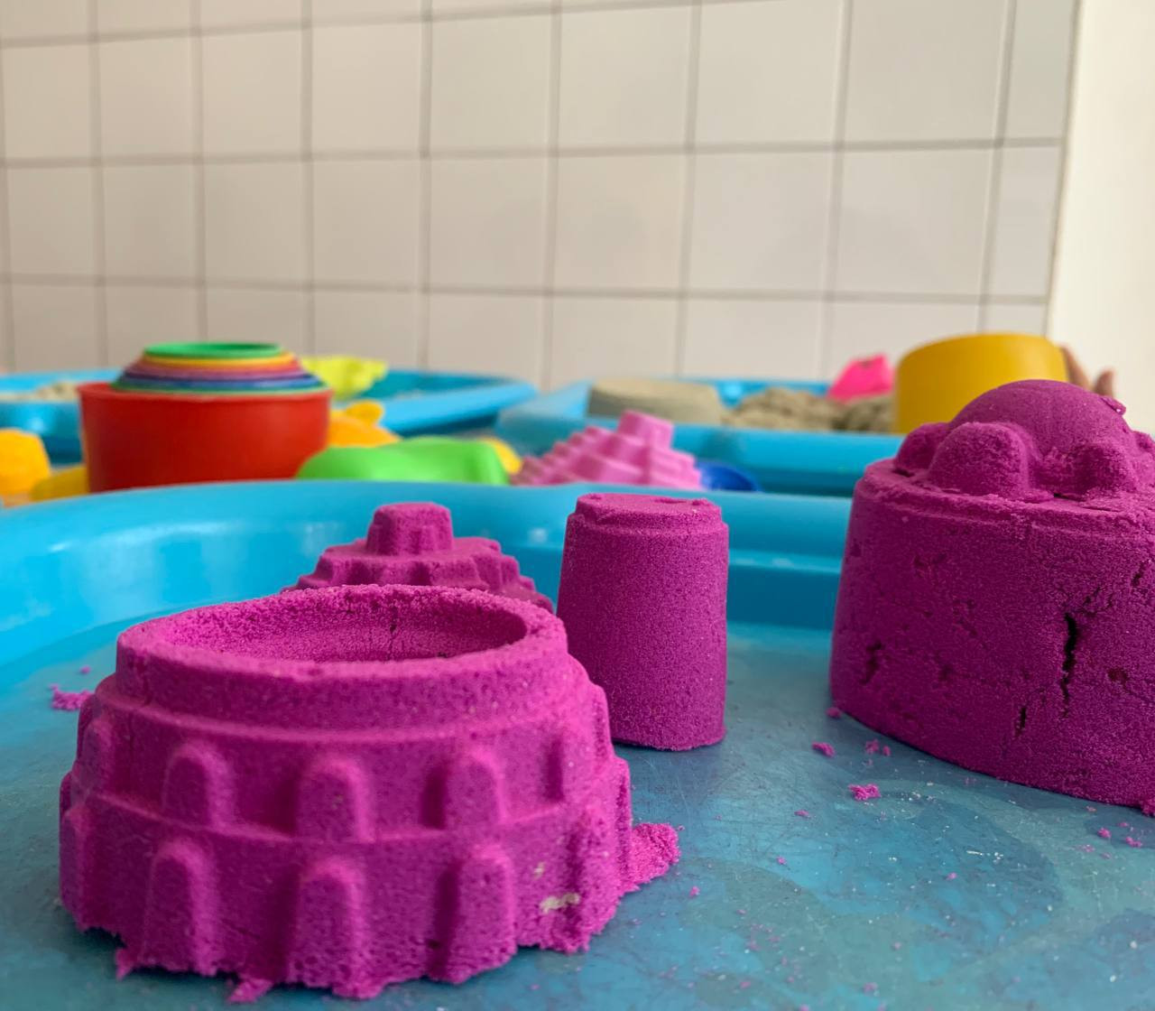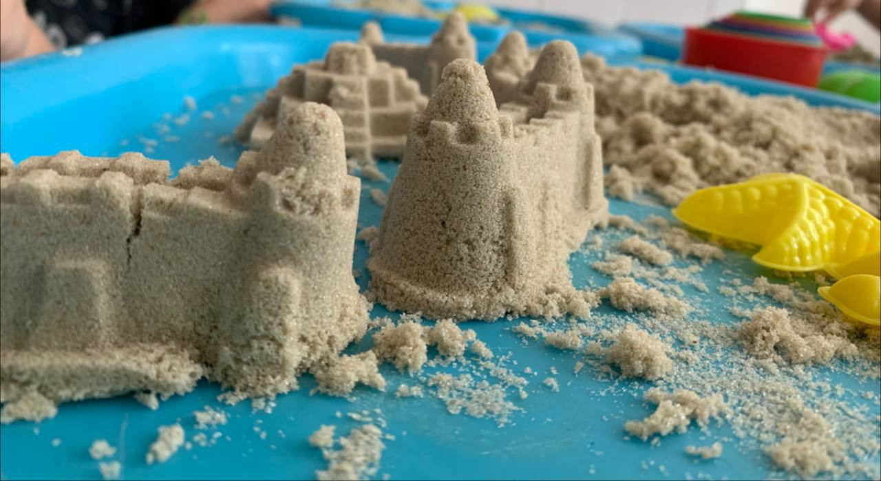 Специалист по работе с семьей Меджидова Залина ежедневно проводит групповые занятия по песочной терапии, с использованием кинетического цветного песка.