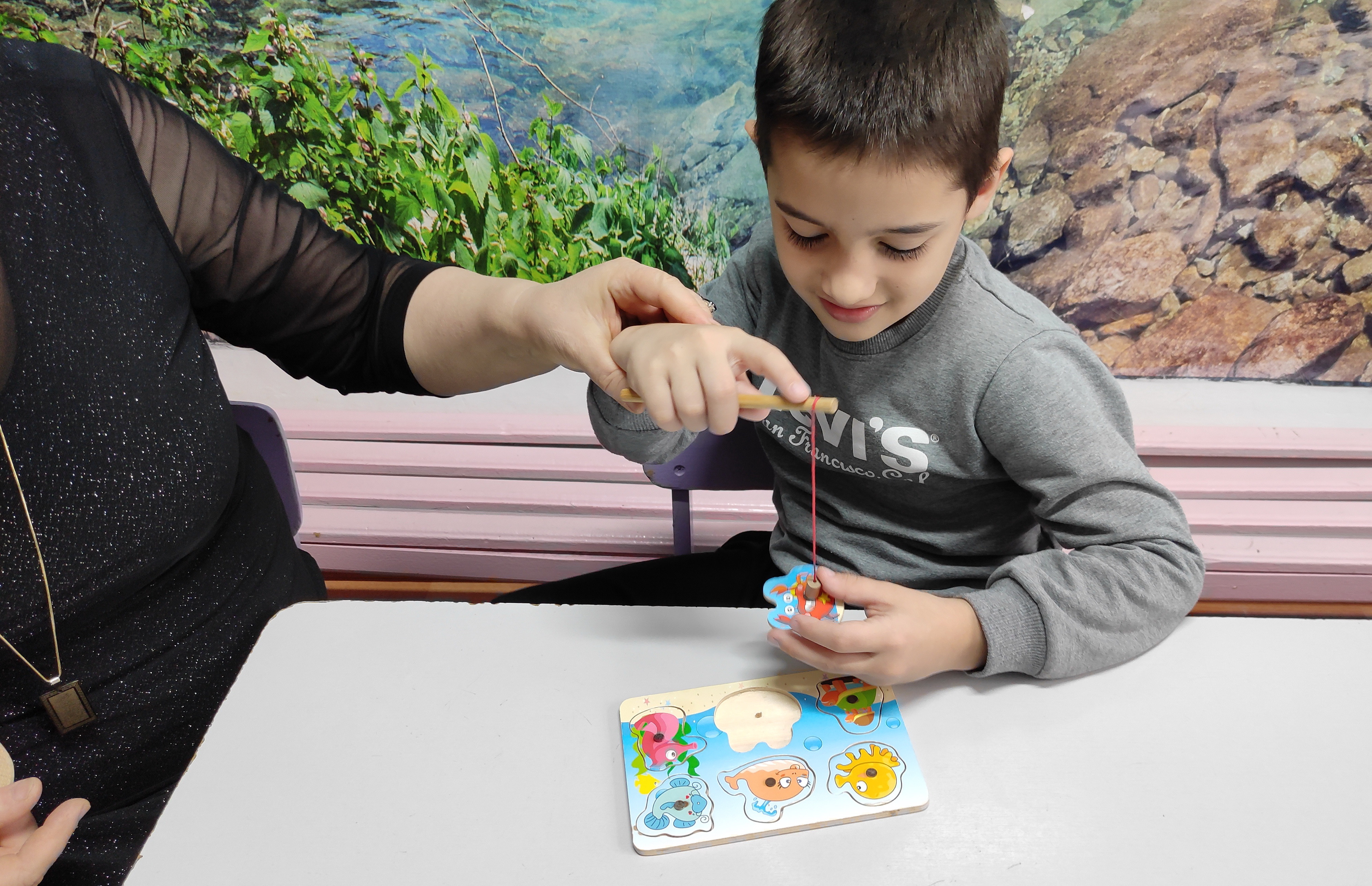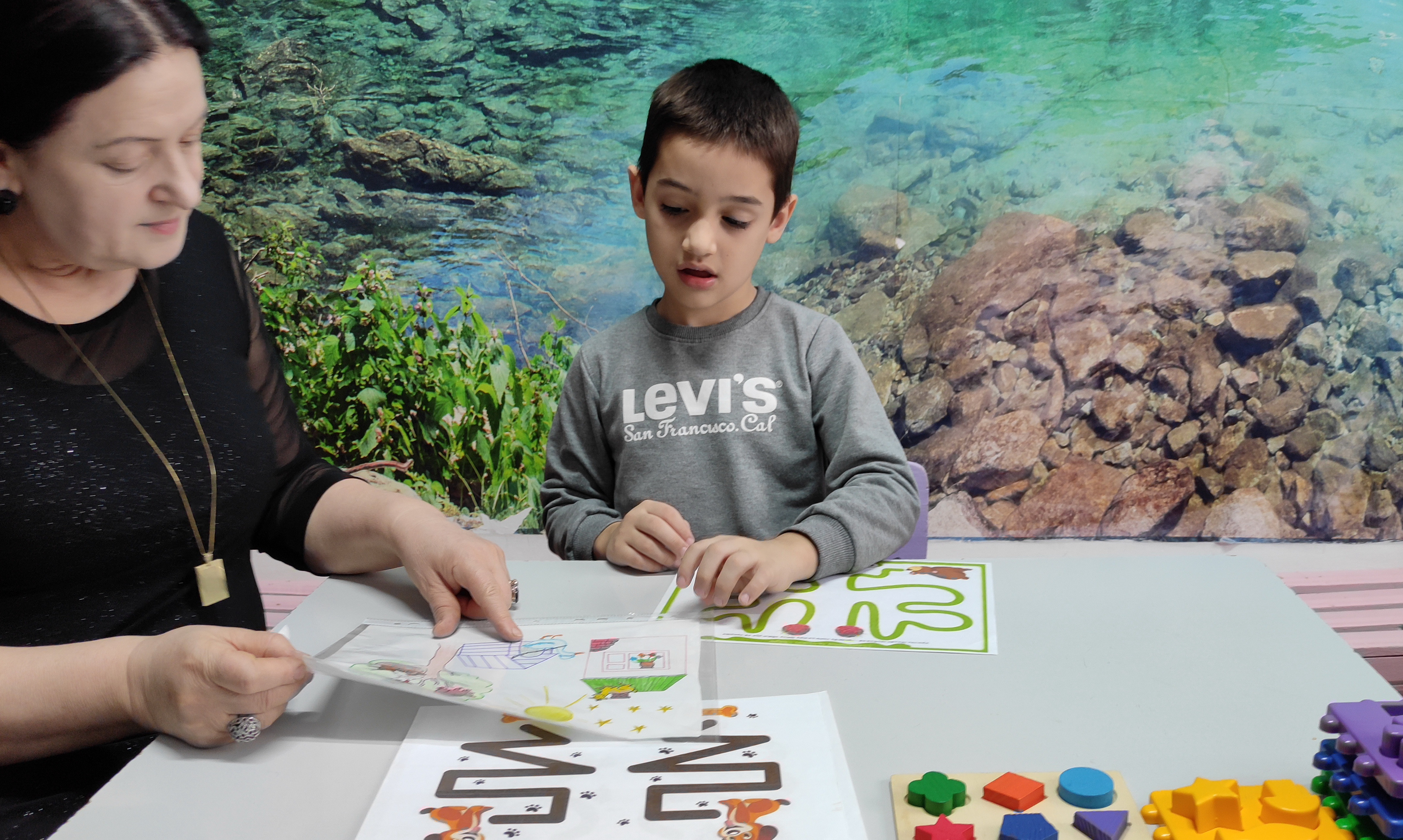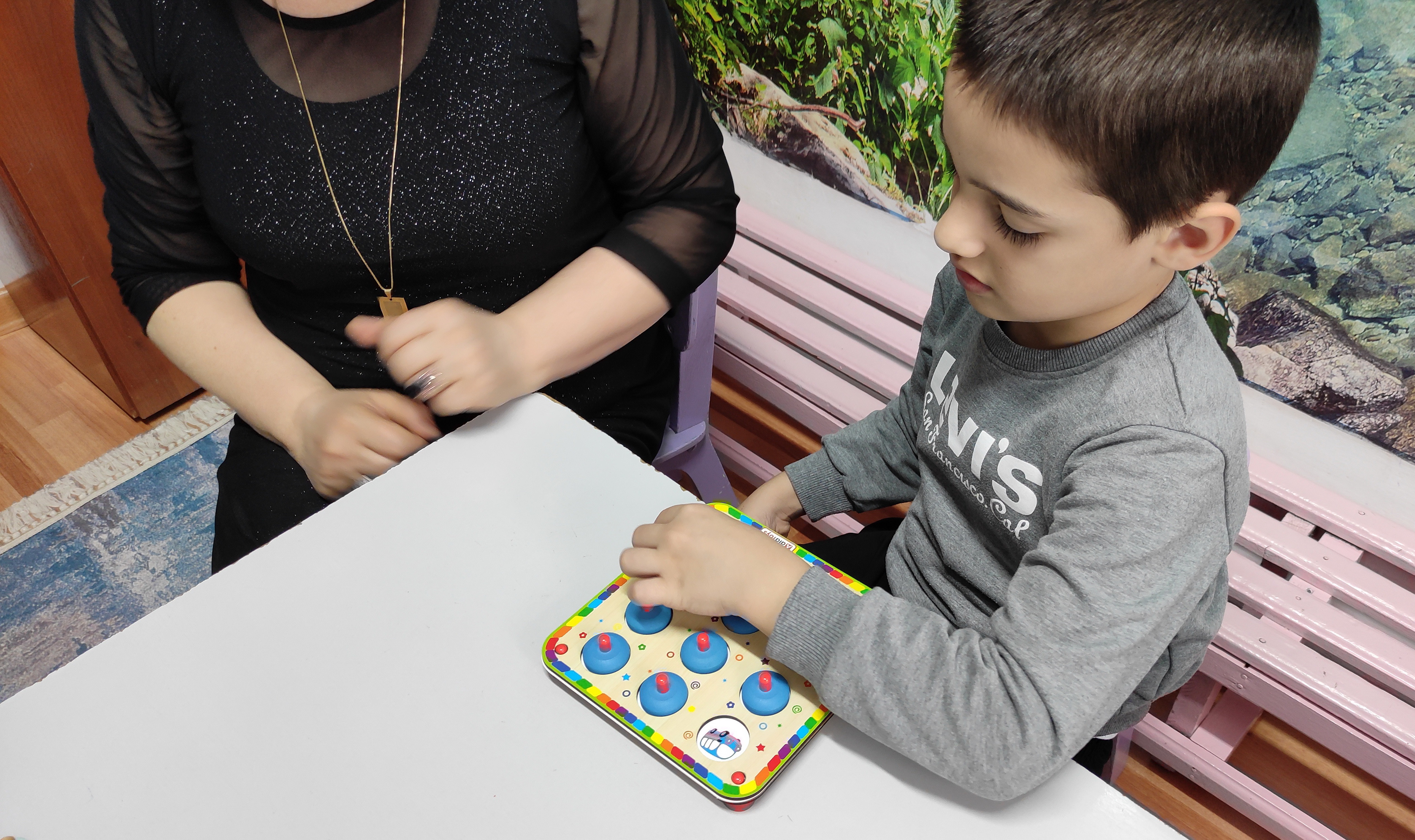 Индивидуальная работа психолога Наиды Алижановой, направленная на установление эмоционального контакта с ребёнком, развитие внимания, зрительной памяти, мышления, восприятия, графомоторных навыков.