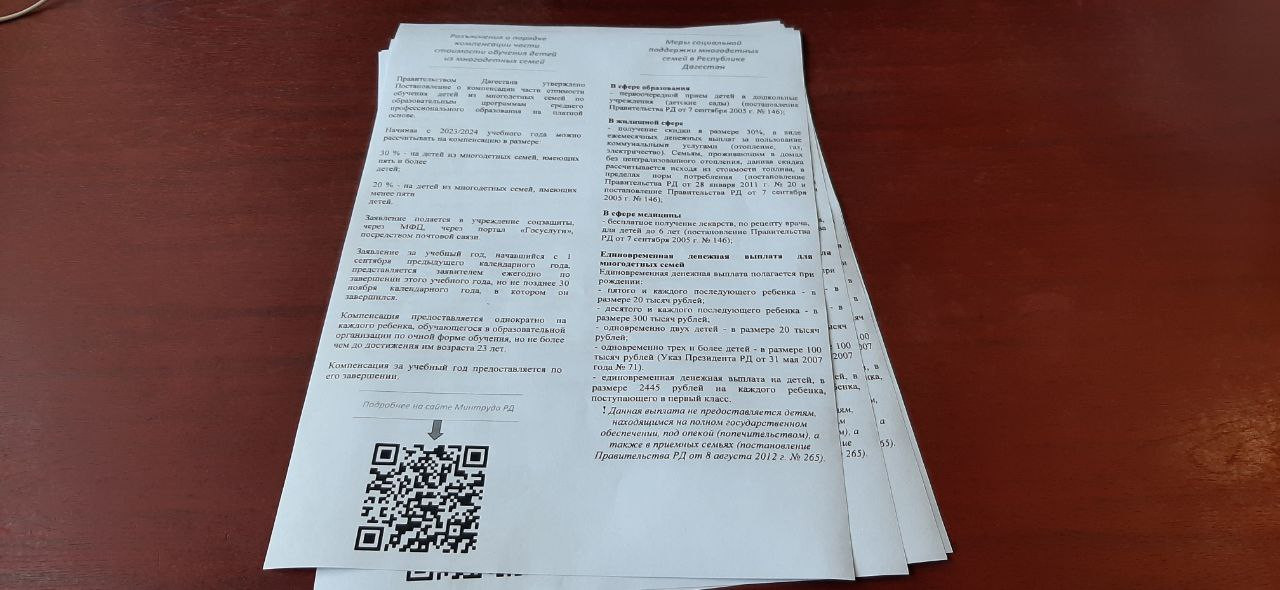 Специалисты социальной защите Хасавюртовского района провели работу, направленную на информирование граждан о возможностях получения социальной помощи для многодетных малоимущих семей. В рамках данной работы были распространены специальные буклеты содержащие подробную информацию о порядке компенсации части стоимости обучения детей из многодетных семей, а также о других видах социальной поддержки для семей, находящихся в трудной жизненной ситуации.
