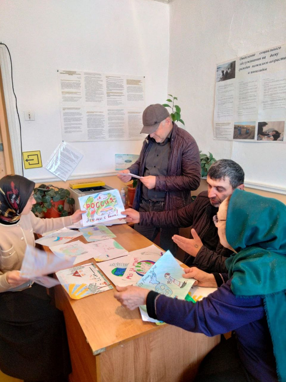 С 12 апреля по 10 мая в ГБУ РД ЦСОН в МО "Ахвахский район" был объявлен конкурс рисунков "Дети России -за мир", а так же конкурсное сочинение " Письмо солдату" среди детей и подростков, обслуживаемых в учреждении, от 8 до 16 лет. Дети приняли активное участие в конкурсе. Рисунки получились красочными и яркими. По итогам конкурса были выбраны победители.
