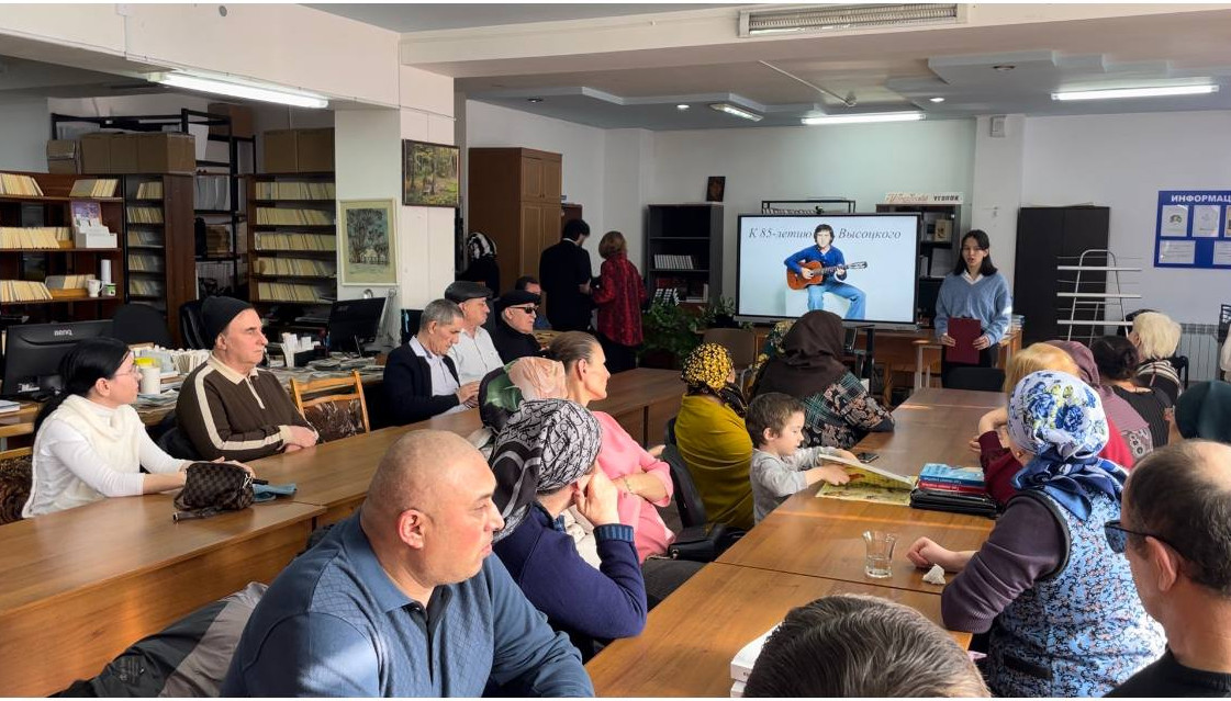 К 85-летию со дня рождения Владимира Высоцкого в Библиотеке для слепых состоялся литературно-музыкальный вечер. 19 января Республиканская специальная библиотека для слепых совместно с Центром традиционной культуры народов России ДК ВОС и Центром социального обслуживания граждан пожилого возраста и инвалидов г. Махачкала провели литературно-музыкальный вечер «Струна, звучащая стихами», посвященный 85-летию со дня рождения известного поэта, актера, певца В. С. Высоцкого. Вечер украсили песни, исполненные певцом-самоучкой Рамазаном Омаровым и учащиеся школы-гимназии №33 Дибирова Валентина и Тузова Руслана прочитали стихотворения. Вечер завершился дружеским чаепитием.