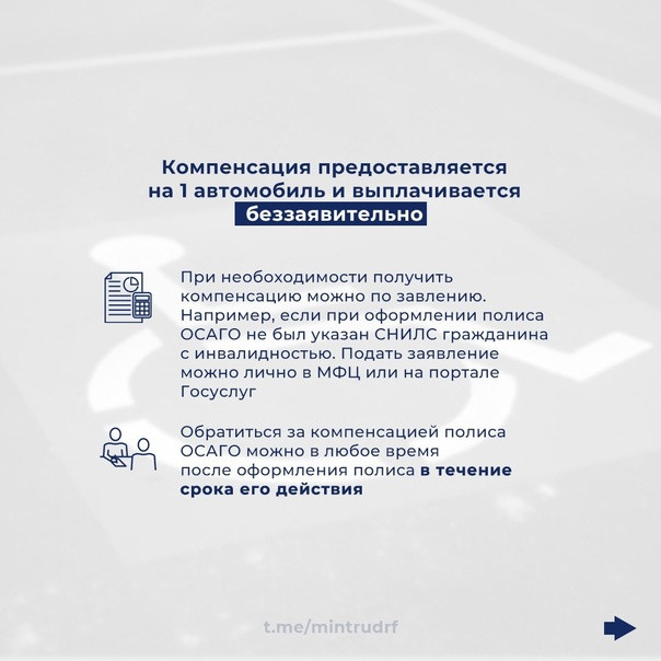 Граждане с инвалидностью и родители детей с инвалидностью могут получить компенсацию в размере 50% стоимости полиса ОСАГО.