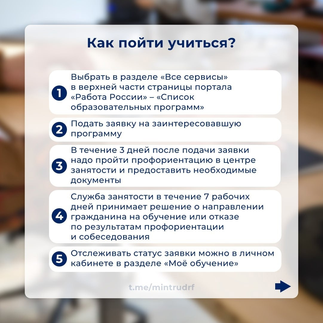 Посмотреть доступные курсы и подать заявку можно на портале "Работа России".