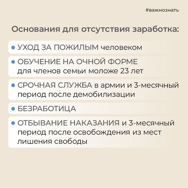 Единое пособие назначается при наличии у трудоспособных членов семьи заработка (стипендии, доходов от трудовой или предпринимательской деятельности или пенсии).При этом сумма среднедушевой дохода семьи должна быть меньше прожиточного минимума на человека в регионе проживания.