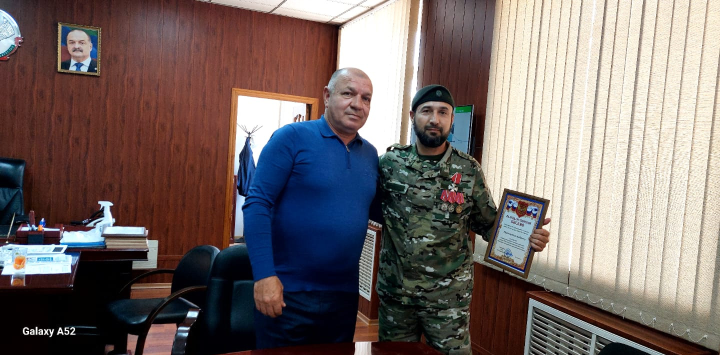 Далее беседу продолжили в администрации Курахского района с главой муниципалитета Замиром Азизовым. Глава района поблагодарил Ибрагимова М.Ж. за верность долгу и Отечеству, за мужество и самоотверженность.