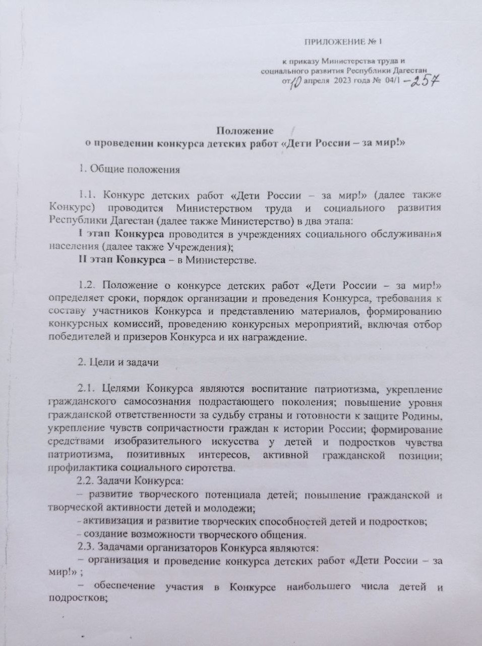 Во исполнение приказа Министерства Труда и Социального Развития Республики Дагестан №04/1-257 от 10 апреля 2023 года "О проведении конкурса детских работ " Дети России-за мир!" в ГБУ РД ЦСОН в МО "Ахвахский район" проводится конкурс среди детей и подростков, обслуживаемых в учреждении от 8 до 18 лет.