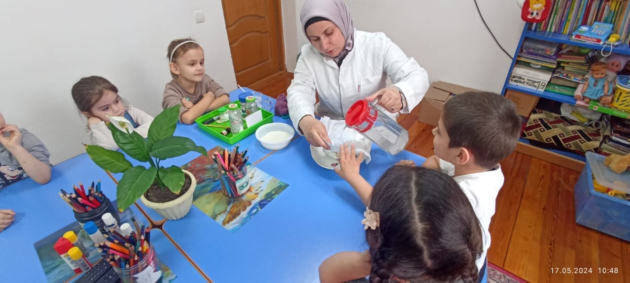 Воспитатель Омарова М.А. в рамках кружка "Любознайка" провела занятие на тему: «Зимние опыты летом».