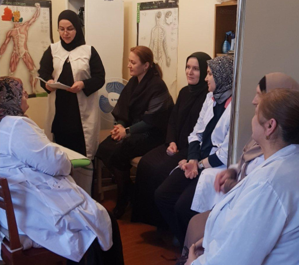 Медсестра по массажу Пириева А.Д. прочитала лекцию на тему: "Массаж при ДЦП". На котором раскрыла причины патологии, виды ДЦП, задачи массажа, особенности выполнения, польза и сочетание с ЛФК. На лекции присутствовали медработники и мама с ребенком, который и стал эпицентром внимания практической части лекции.Присутствующие получили полезную информацию и смогли увидеть наглядно сам процесс массажа.