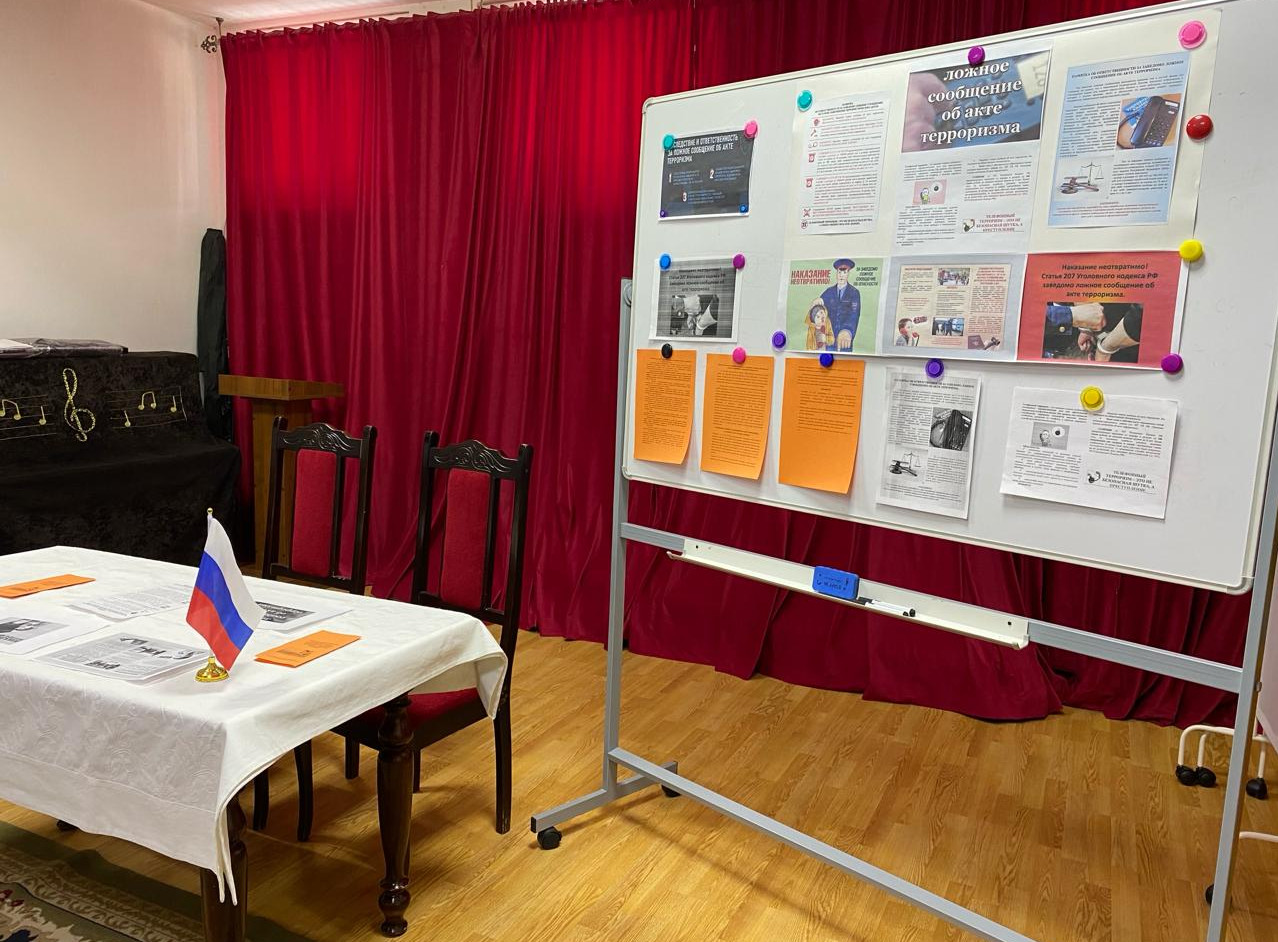 На информационных сайтах учреждения (Телеграмм-канал, ОК, VK) и на официальном сайте, размещена информация об ответственности граждан за заведомо ложное сообщение об угрозе совершения террористических актов и об уголовной ответственности. Информация также размещена на плакатах, стендах, наглядных материалах и памятках.