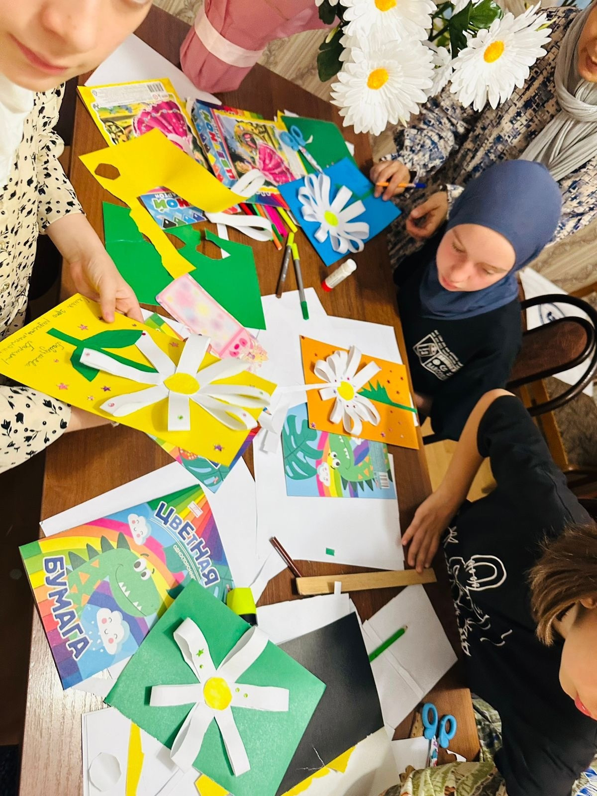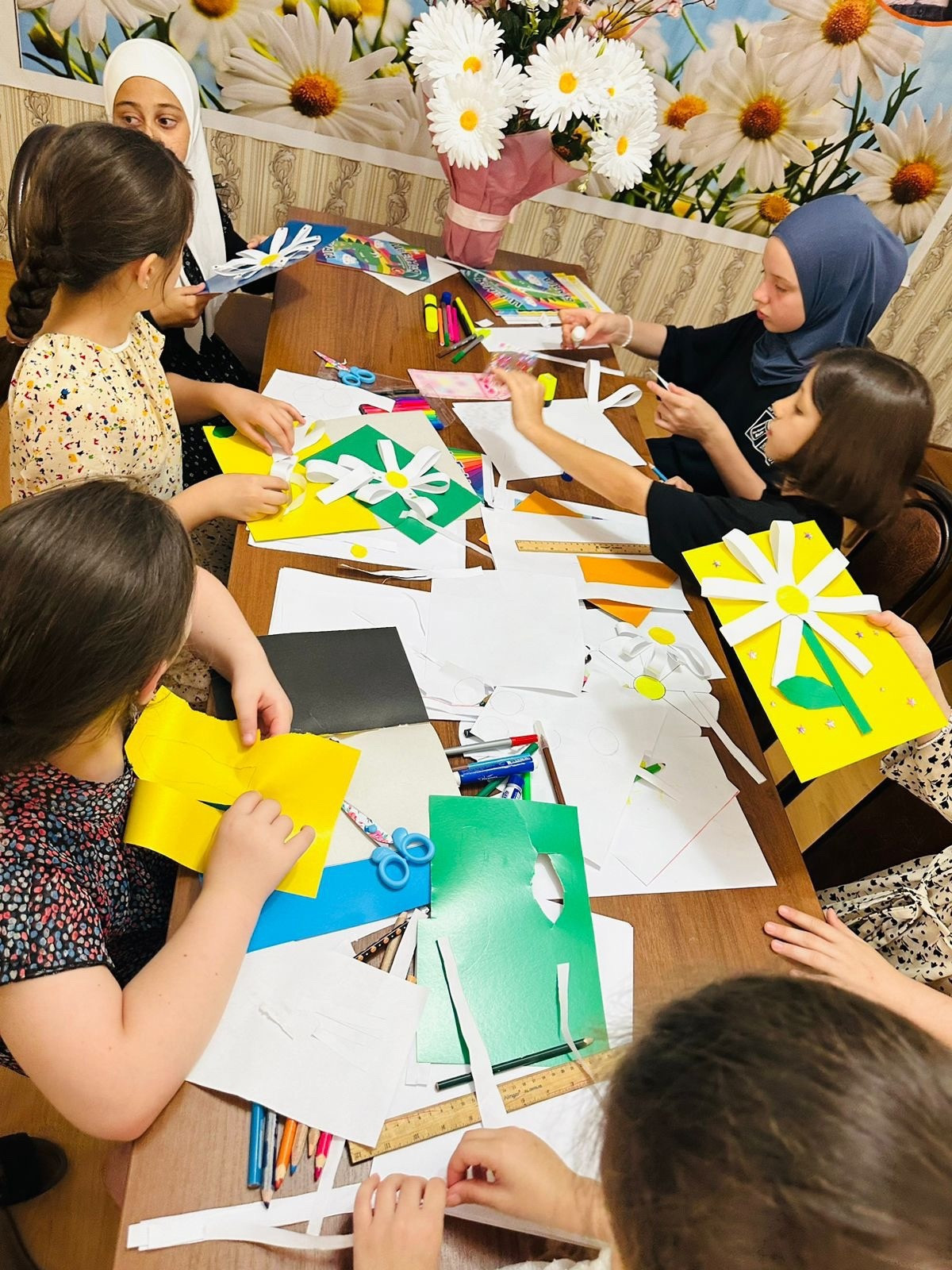 Сегодня работниками отдела семьи Комплексного центра соцобслуживания города Хасавюрт был проведен мастер-класс по изготовлению объемной открытки «Ромашковое счастье» с детьми из семей, находящихся в трудной жизненной ситуации. Дети с большим желанием работали каждый над своей открыткой и в результате каждая поделка получилась уникальной. Изготовленная открытка была подарена детьми в знак любви и заботы своим родителям. Участники мастер-класса смогли также познакомиться с историей возникновения праздника, а в конце мероприятия была оказана материальная помощь в виде промтоваров (детской одежды).
