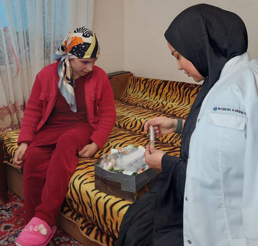 Медицинский работник и заведующая отделением на дому детей и семей с детьми посетили семьи находящиеся на учете в центре .