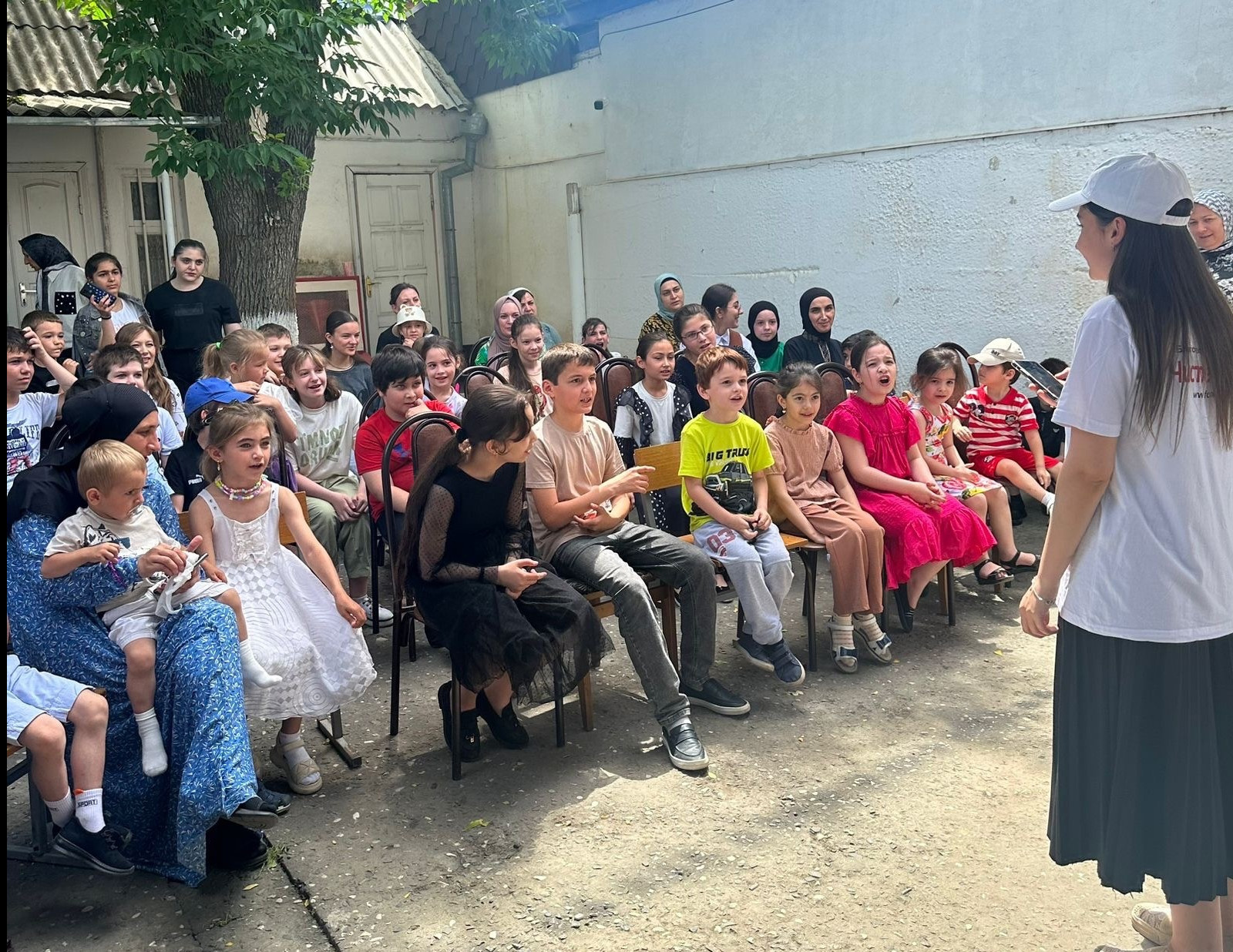 Во дворе Центра для 30 детей из остронуждающихся подопечных семей была организована развлекательная программа студентами-волонтерами из Хасавюртовского профессионально-педагогического колледжа. Дети с большим удовольствием принимали участие во всех конкурсах и викторинах, танцевали и пели песни, играли с аниматорами. В праздничной обстановке детям были вручены подарочные пакеты со сладостями.Руководство и коллектив Центра выражают благодарность спонсору мероприятия руководителю б/ф «Чистое сердце» Дибировой Амине Габибуллаевне.