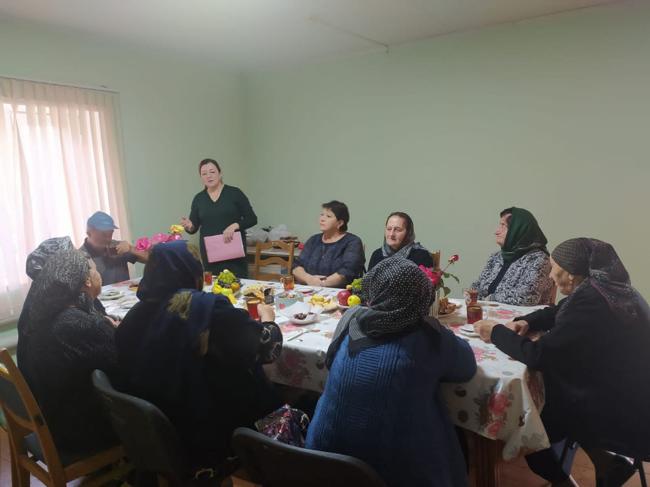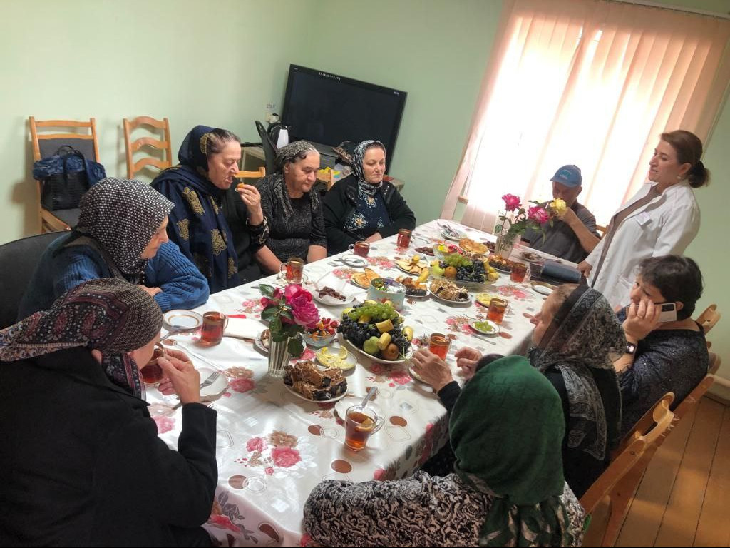 С тёплыми словами поздравлений в адрес гостей выступили директор центра Абдулфетах Бабаев, заведующая отделения Заира Азизова, психолог Имамат Ягибекова. Также выступила медсестра центра с темой предотвращение риска инсульта и инфаркта в пожилом возрасте. Среди присутствующих была гостья которая сегодня справляла 75-летие.