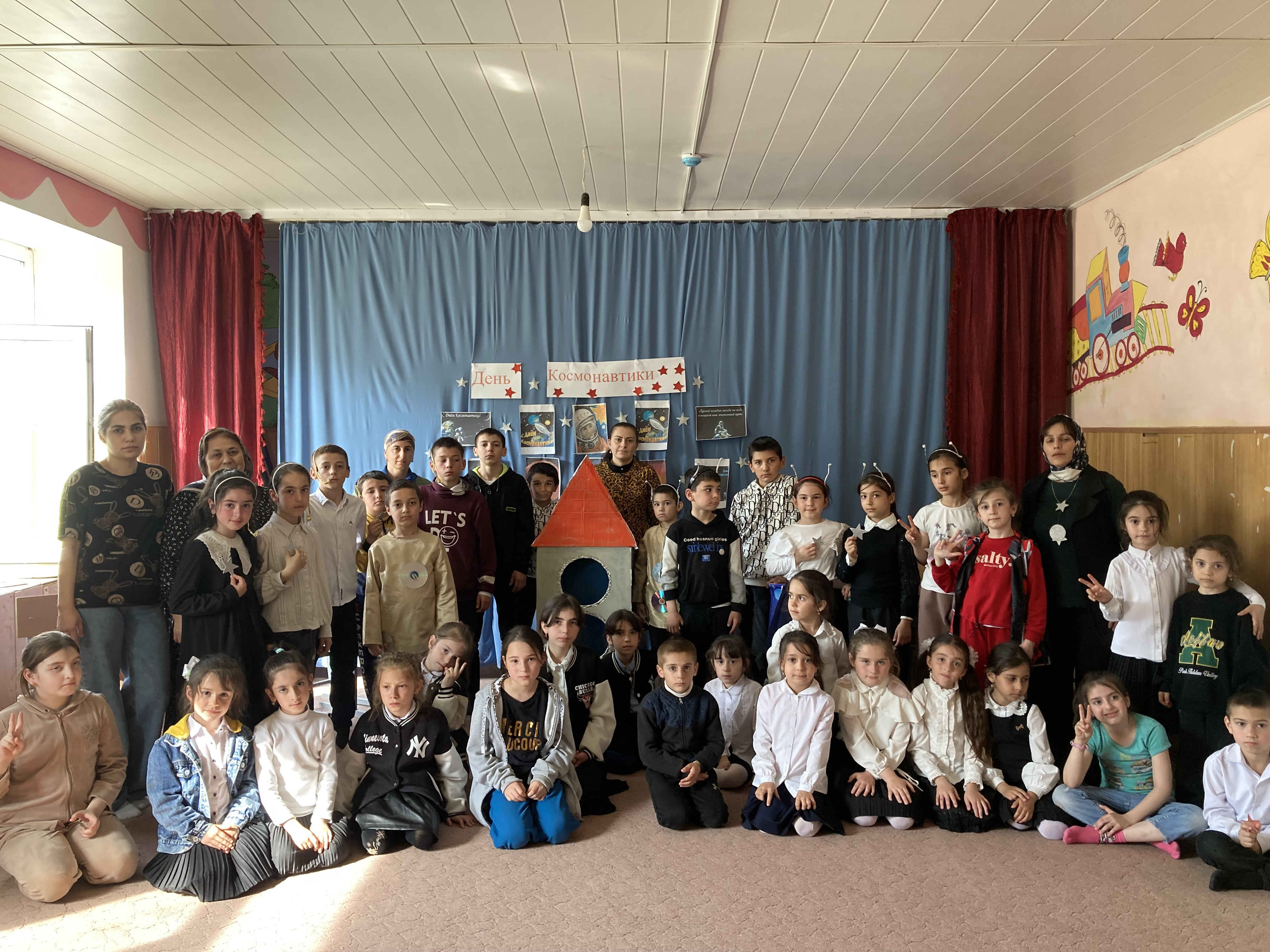 12 апреля 2023 г. с детьми отделения временного пребывания детей и семей с детьми и с детьми отделения социального обслуживания детей и семей с детьми в полустационарной форме провели мероприятие: «Космическое путешествие».