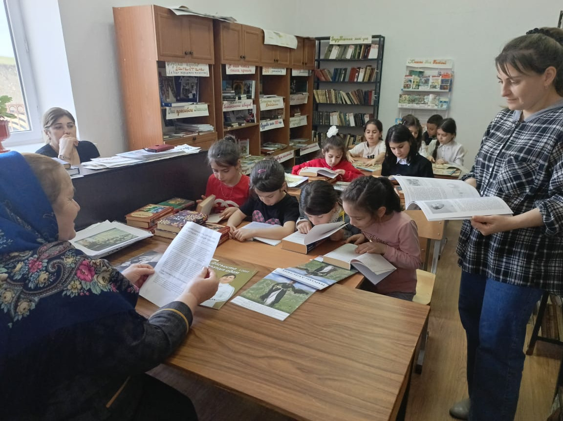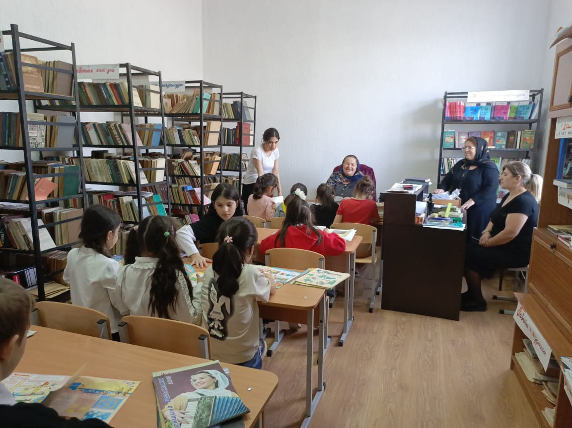 Заведующая филиалом межпоселенческой централизованной районной библиотеки Джунайдиева Хадижат познакомила с историей создания книг, посмотрели презентацию: «В гостях у книги», участвовали в викторине: «Путешествие по любимым сказкам», обсуждали свои любимые произведения, по сюжетным картинкам, раскрывая скрытый смысл и характеры героев сказок и рассказов.