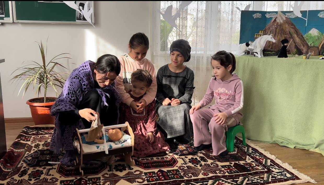 Воспитанники нашего центра показали сценку "Укладывание ребенка в колыбель".
