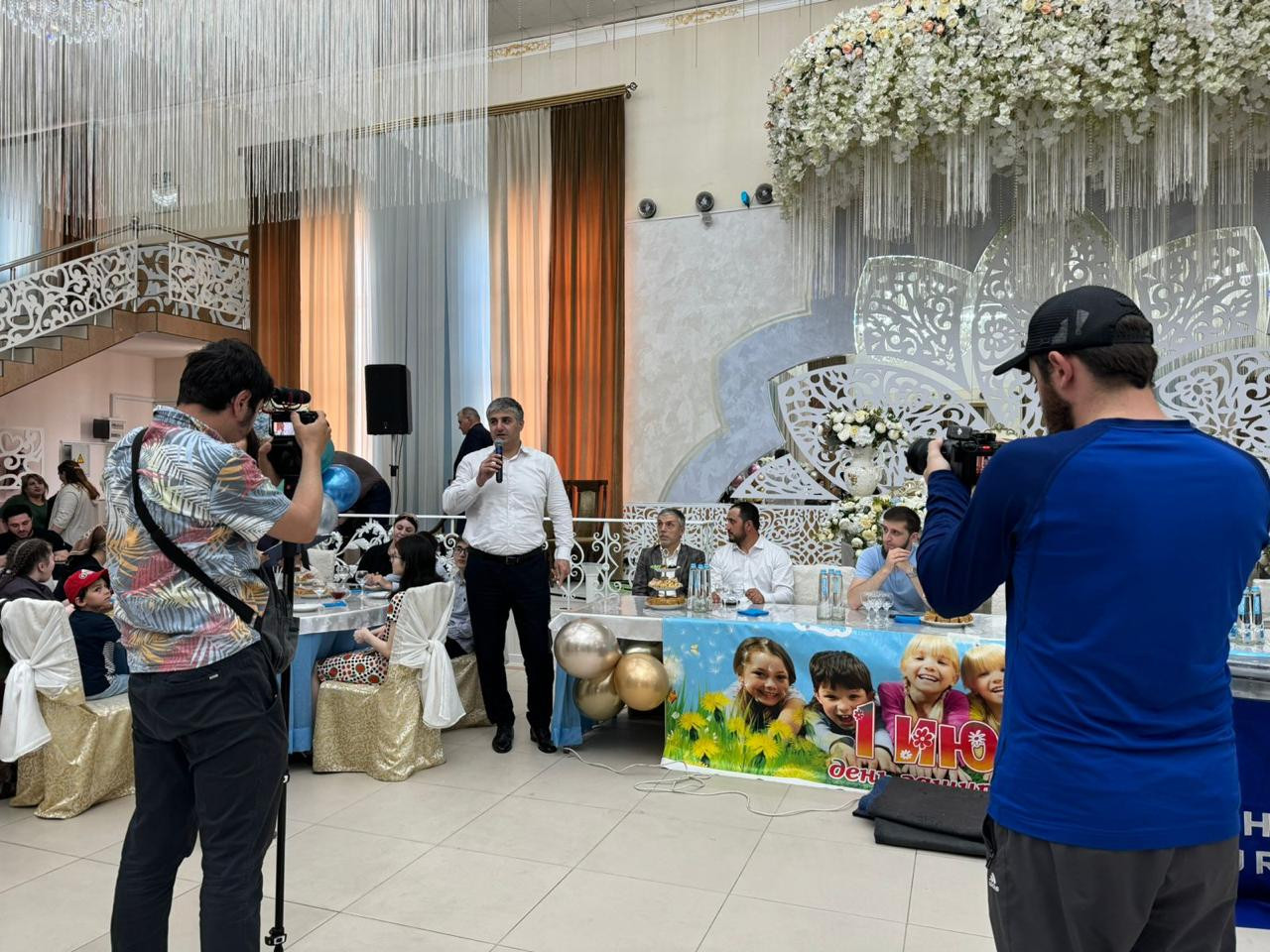 Для приглашенных были накрыты столы с отменными блюдами и напитками. Также детям и их родителям была представлена развлекательная программа с участием «Щоу Мурада – Мыльные пузыри», аниматоров «Карлсон» и звезд дагестанской эстрады. Выступления артистов детям очень понравились, подарили им много положительных эмоций, они постоянно пускались в пляс, танцпол не пустовал.