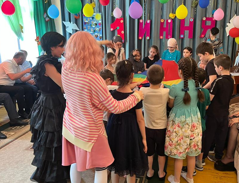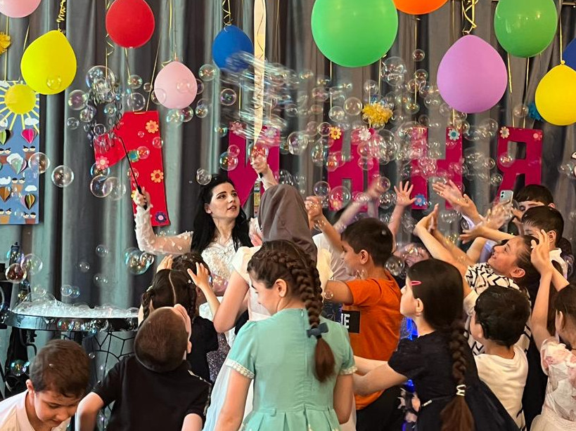 Ну, а дальше были сюрпризы в виде веселых аниматоров  "Рамина Кидс Шоу" и представителей агентства «Эляшоу»,  из г. Хасавюрта, со своей программой «Шоу мыльные пузыри». Мероприятие длилось на протяжении двух часов, но казалась, что детям этого мало. Они забыли о времени и  процедурах.