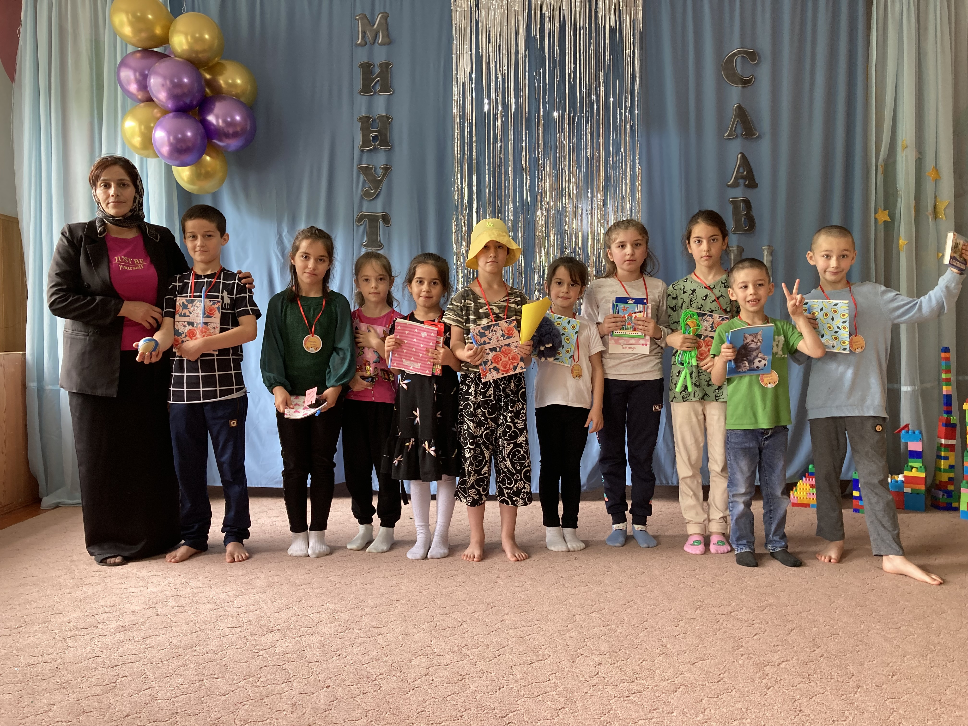 Каждый конкурсант после своего выступления получает задание от ведущего. Все желающие дети показали свои способности и таланты. Мы рады за победителей. А те, кто не получил сегодня призового места – не огорчайтесь, вы доставили нам много приятных минут. Мы желаем вам дальнейших творческих успехов. Мы верим, что творческий дух, сценический азарт, внутренний огонь совершенства в вас есть и будет всегда! Всем конкурсантам «Минута славы» были вручены медали и призы, а всем зрителям сладости и хорошее настроение на целый день