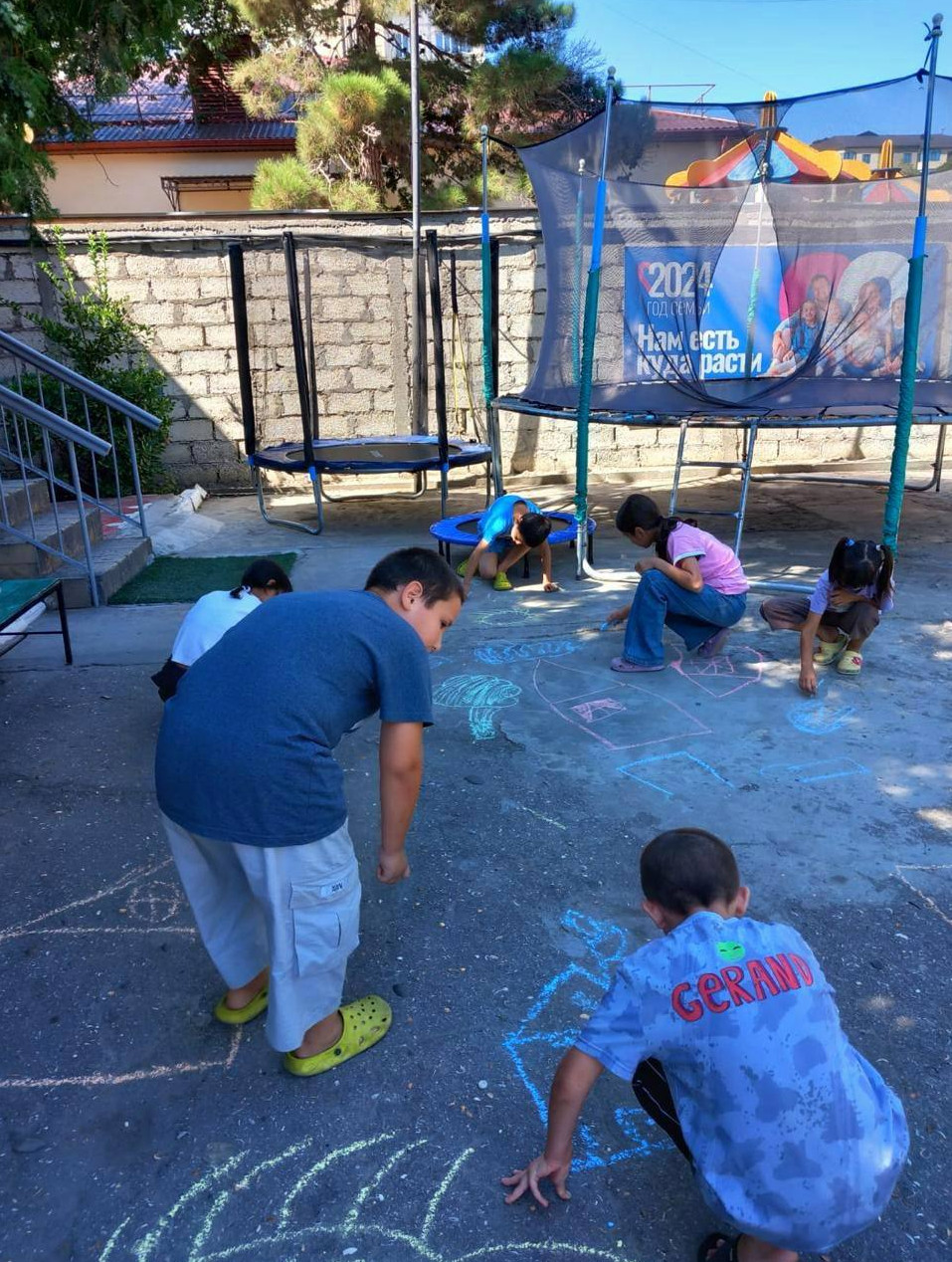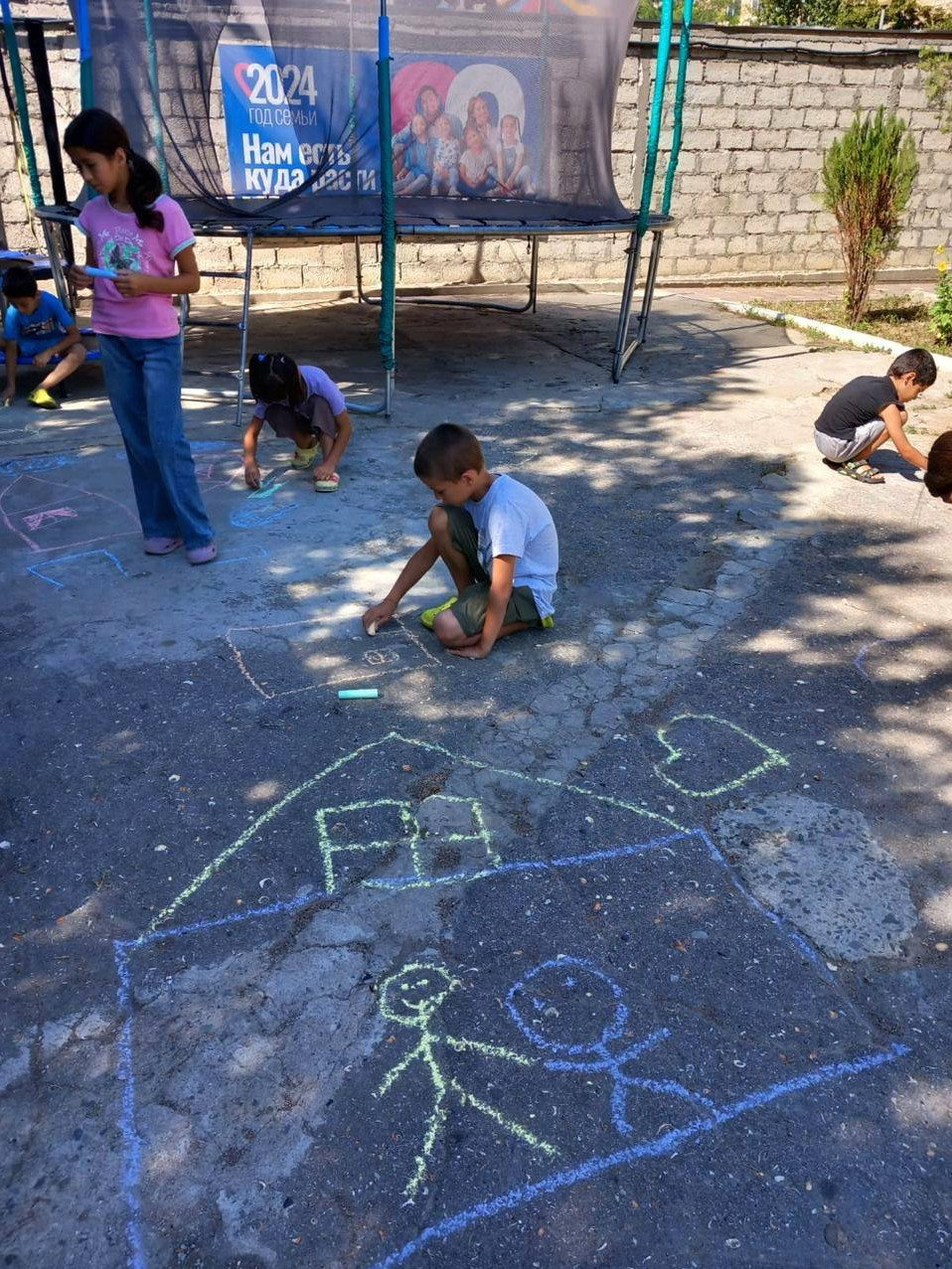 В рамках года семьи и и согласно плана работы Центра среди воспитанников провели конкурс рисунков на асфальте "Мир глазами ребенка".