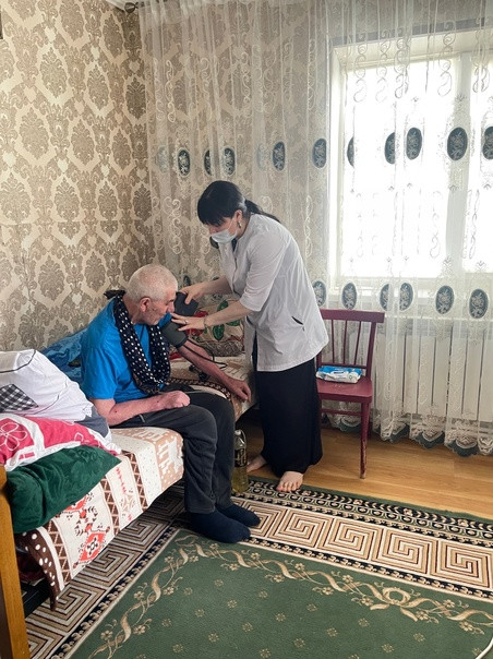 Пожилым людям провели медицинский осмотр, измерили давление, так же поговорили о самочувствии и здоровье. Всего обслужили 10 людей.