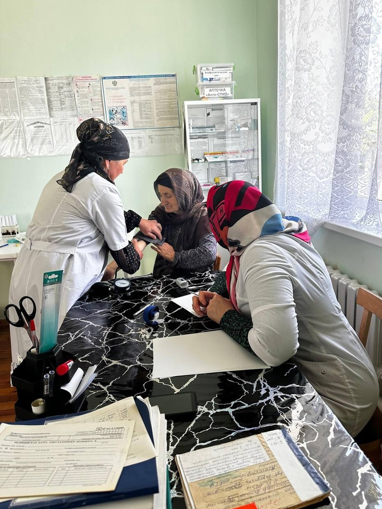 6 июня 2024 года мобильная бригада ГБУ РД КЦСОН в МО «Гунибский район», в составе заведующей отделением социального обслуживания на дому граждан пожилого возраста и инвалидов Саидовой З. Г. и специалистов по социальной работе Гасангусейновой П. Г. и Магомедовой Ж. М., выехала в с. Корода Гунибского района, с целью доставки пожилых граждан старше 65 лет в Кородинский ФАП по региональному проекту «Старшее поколение» и по национальному проекту «Демография», для проведения профилактических медицинских осмотров и диспансеризации на выявление отдельных социально-значимых неинфекционных заболеваний.Для прохождения диспансеризации вКородинский ФАП были доставлены 15 граждан старшего возраста.Все граждане прошли первичный осмотр, лабораторную диагностику (общий анализ крови, мочи), инструментальную диагностику (ЭКГ) и другие медицинские услуги.Выезд осуществляли согласно графику, разработанному совместно с Гунибской ЦРБ.По завершению диспансеризации все пожилые граждане были доставлены по домам.