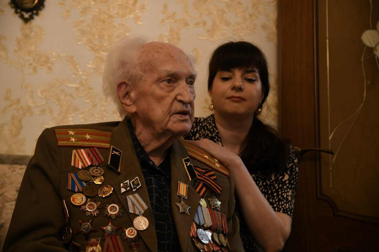 Мурад Казиев вместе с главой города Ризваном Газимагомедовым поздравили Ветерана Великой Отечественной войны Хрисанова Виктора Михайловича с 100 летним юбилеем