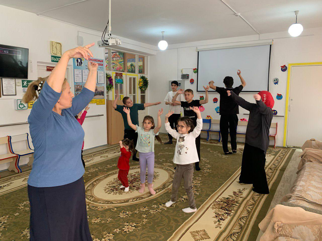 В центре ежедневно проходят занятия по музыкотерапии. Проходят они в разной форме: игра на инструментах, вокал, движения и игра под музыку и т.д.