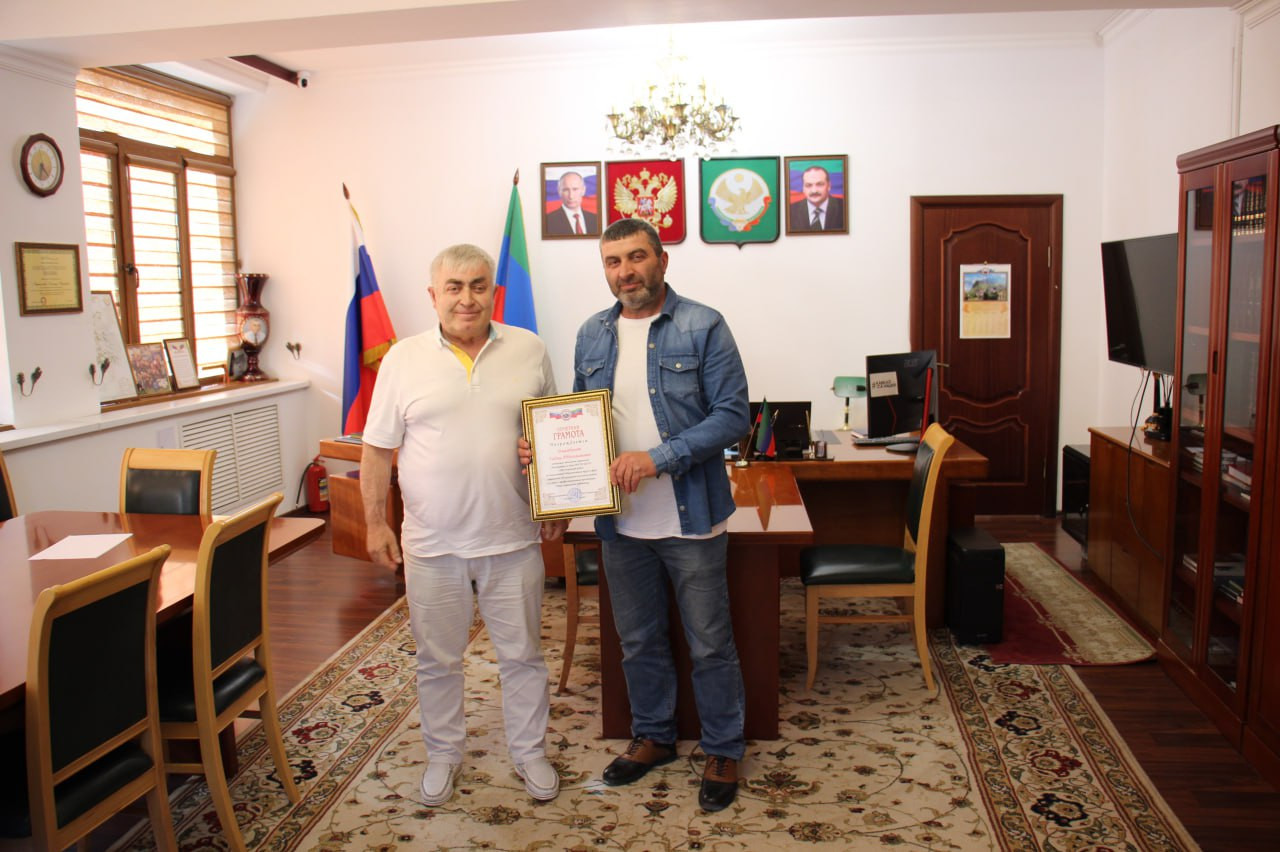 Глава МР «Ахвахский район» Магомед Муртазалиев наградил Почетной грамотой, заведующего отделением социального обслуживания на дому ГБУ РД ЦСОН в МР «Ахвахский район» Джамбулаева Гаджи Абдусаламовича, за многолетний добросовестный труд в сфере социального обслуживания населения района и в связи с профессиональным праздником-Днем социального работника.