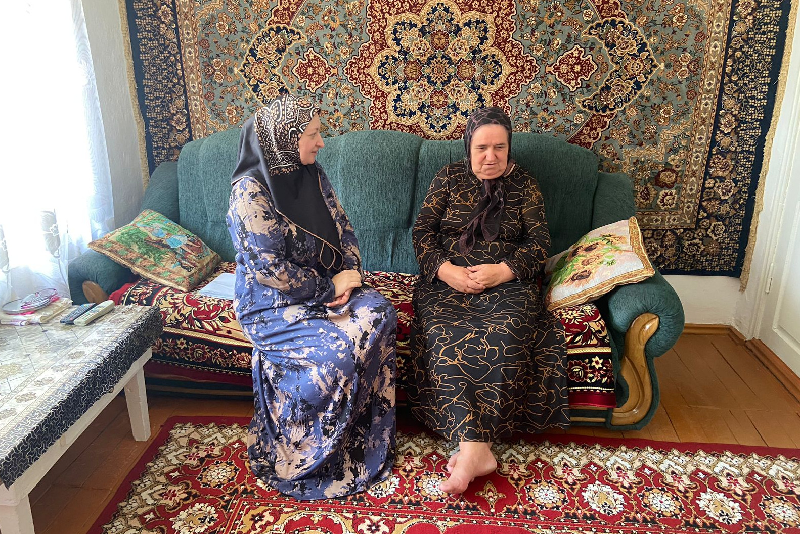 Социальный работник Абдулазизова Чакар у своей одиноко проживающей подопечной за выполнением своих обязанностей.