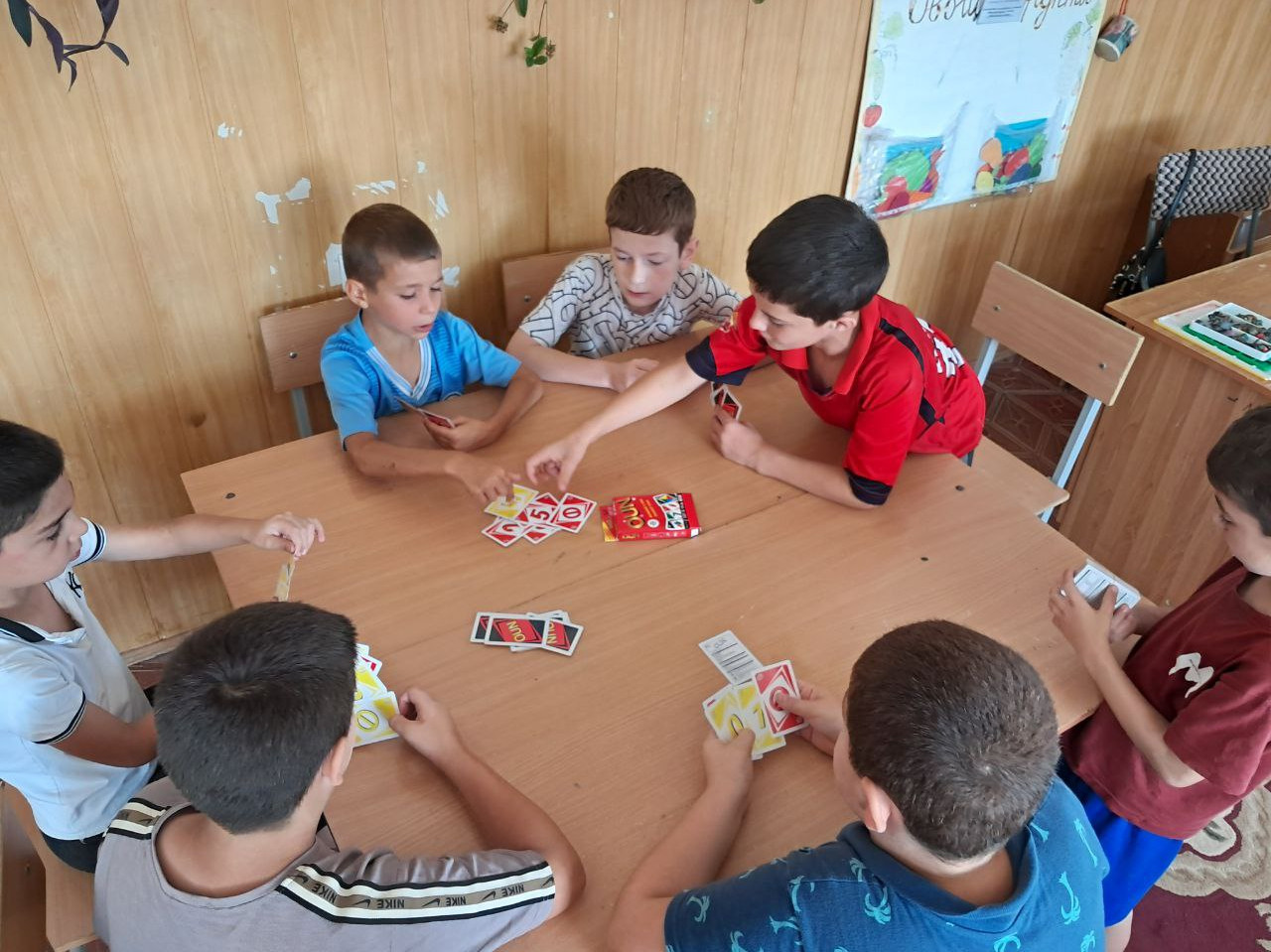 Настольные игры – важный инструмент развития детей. С раннего детства игра – любимое занятие для каждого человека, а для ребенка это основной способ познавать мир, обучаться. В мире большое количество разных игр: подвижные, строительно-конструктивные, сюжетно-ролевые, компьютерные игры, настольные игры . 8 августа 2024г. для детей отделения временного пребывания детей и семей с детьми посещающих комплексный центр социального обслуживания населения провели игровую программа "Настольная игра - победа моя" . Настольные игры – это замечательный способ развить эрудицию, пополнить словарный запас, улучшить логическое мышление, а также хороший способ весело провести досуг. Но самое главное, настольные игры – это живое общение. Любая из таких игр дарит интересное времяпрепровождение, азарт, яркие эмоции. Они, через выполнение игровых действий, позволяют научить ребенка решать интеллектуальные задачи. Во время занимательной игры углубляются и конкретизируются первые представления детей об окружающем мире. Причем, обучающего фактора игры сам ребенок не осознаёт. Даже в наш век компьютерных технологий настольные игры остаются одним из интересных способов времяпровождения. Самое главное, настольные игры – это живое общение, яркие эмоции, умение достигать своей цели и «болеть» за своих друзей. Специалисты отделения познакомили ребят с историей настольных игр и поделились воспоминаниями об играх своего детства. Отдельные категории настольных игр помогают приобрести и улучшить моторику, скорость реакции, координацию, глазомер, умение анализировать. Самым большим преимуществом настольных игр является то, что они не имеют большого давления на зрение (не портят его) и что в них можно играть всей семьей. Задача взрослых – показать детям положительный пример: успокаивать проигравшего, ободрять, искренне радоваться за победителя. Здесь можно реализовать любую свою мечту, примерить на себя любую роль. Правильно подобранные настольные игры дарят радость нашим детям и помогут им получить необходимые знания в непринужденной обстановке. Дети с большим удовольствием поиграли в нарды, шашки, шахматы, детское домино, собирали мозаику, игра: дженга, мини баскетбол. Море веселья и отлично проведенное время с друзьями – вот итог мероприятия: «Настольная игра – победа моя! » Все, кто принял участие в мероприятии, кроме отличного настроения, приобрели новые знания, интересно и весело провели время, получили заряд хорошего настроения.