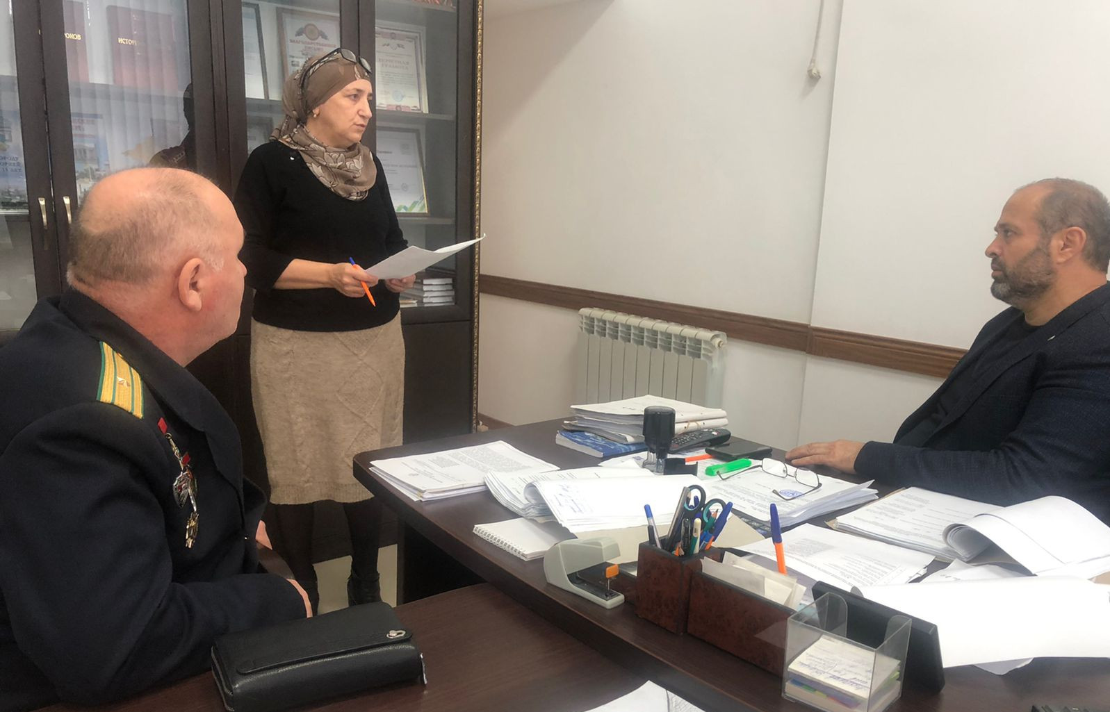 В рамках юбилейной даты 35-летие вывода Советских воиск из Афганистана Директор ГКУ РД Управления социальной защиты Низами Магомедов встретился с участником Афганских событий Агакеримом Магомедовым. Он недавно переехал и зарегистрировался в городе Дагестанских Огнях, на юбилейную дату Управление осуществило денежную выплату ветерану.