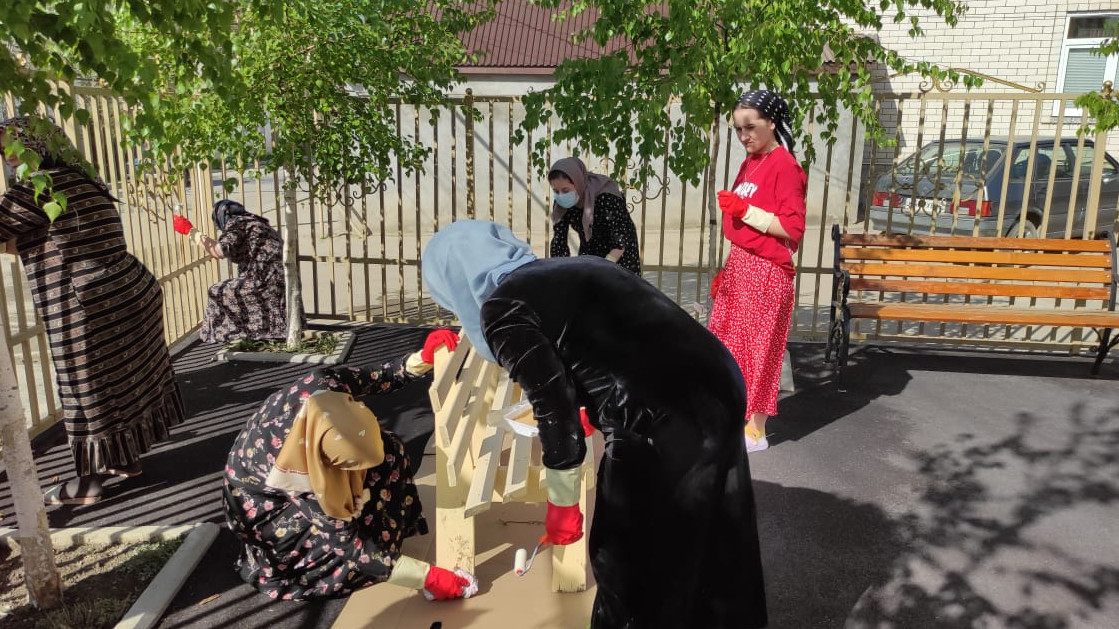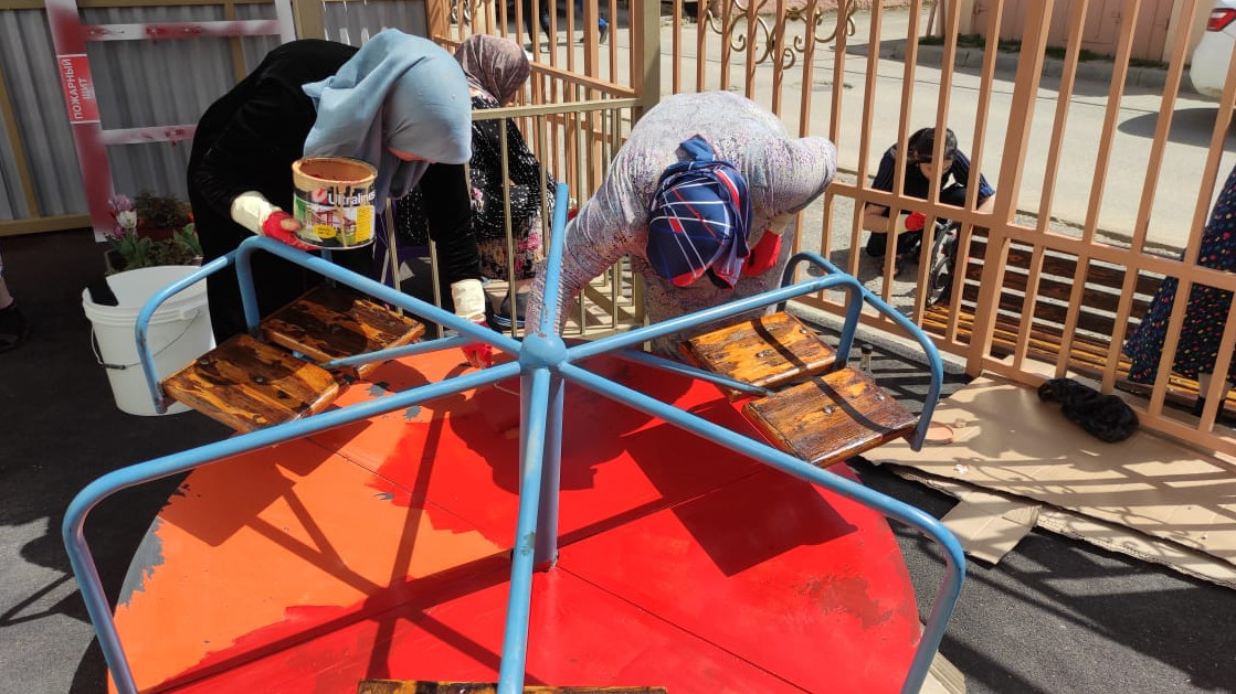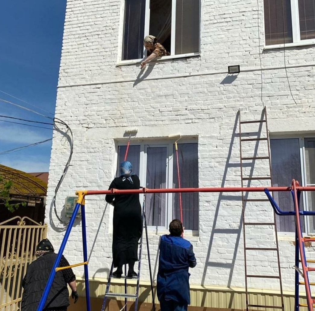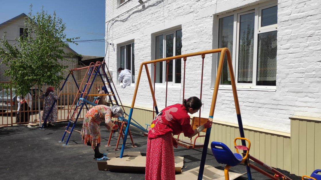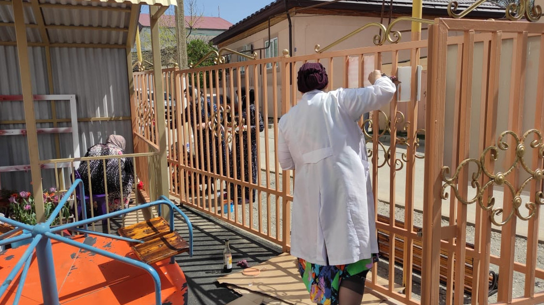 Отложив на время привычные обязанности, сотрудники, разобрав рабочий инвентарь, провели работу по очистке территории: вырублены сухие ветки, выметены игровая площадка и улица от центра села до учреждения, проведена побелка фасада здания и деревьев, покрасили забор и частично игровое оборудование, убраны трава и мусор, приведены в порядок клумбы, в них высадили рассаду цветов.