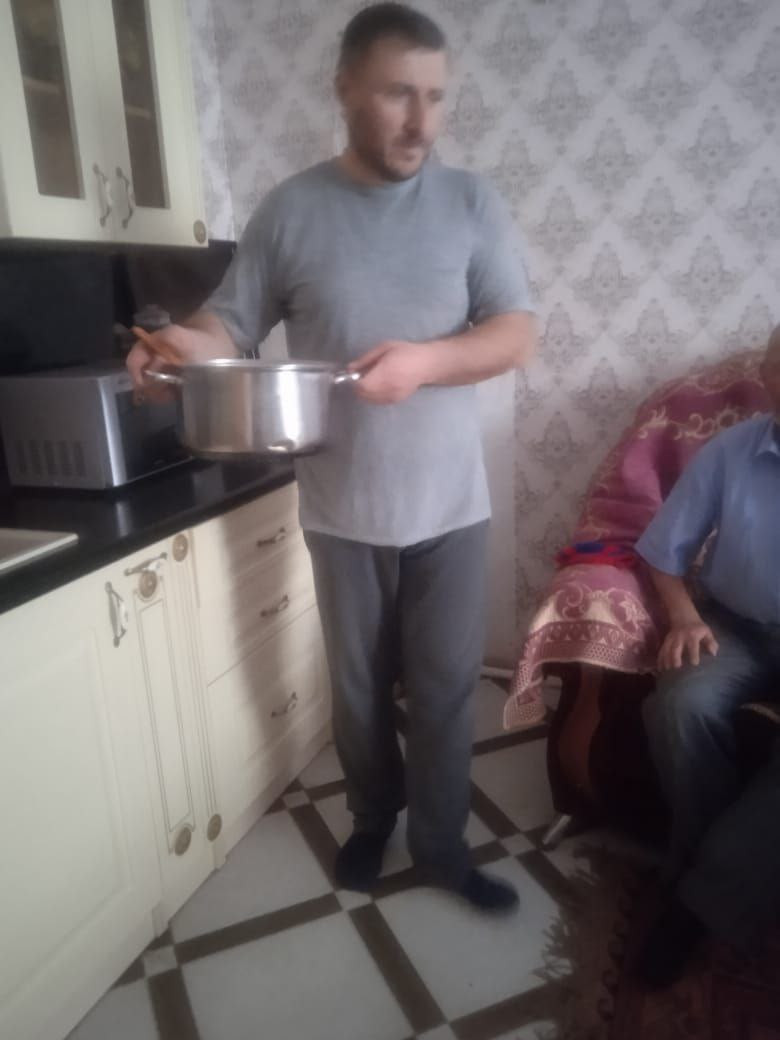 Соц. работник отдела обслуживания граждан пожилого возраста и инвалидов #5 Пирмагомедов Ярмет оказывает услуги бытового характера подопечному.