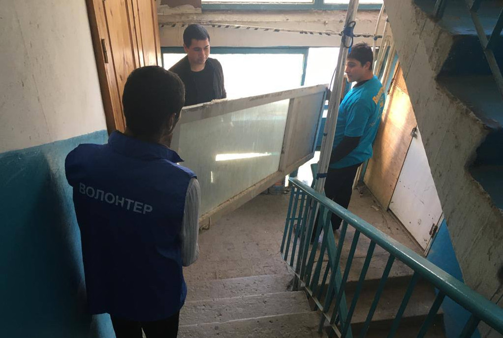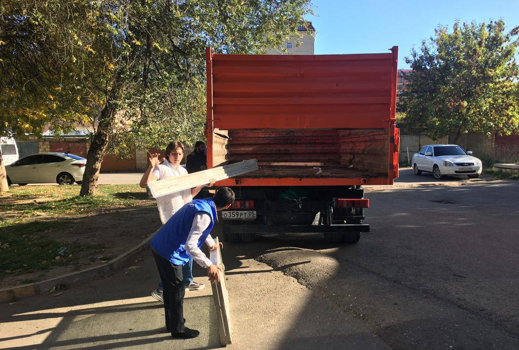 ГБУ РД КЦСОН в МО «город Дербент» совместно с Управлением культуры Администрации г. Дербента с привлечением волонтёром «Молодая гвардия», оказали помощь малоимущей семье инвалидов Курганинской Т.А. в вывозе строительного мусора из квартиры.