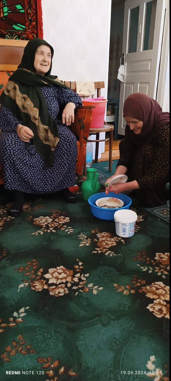 Социальный работник 1 отд. СО на дому Сулейманова Патимат при оказании социально-бытовых услуг подопечной.