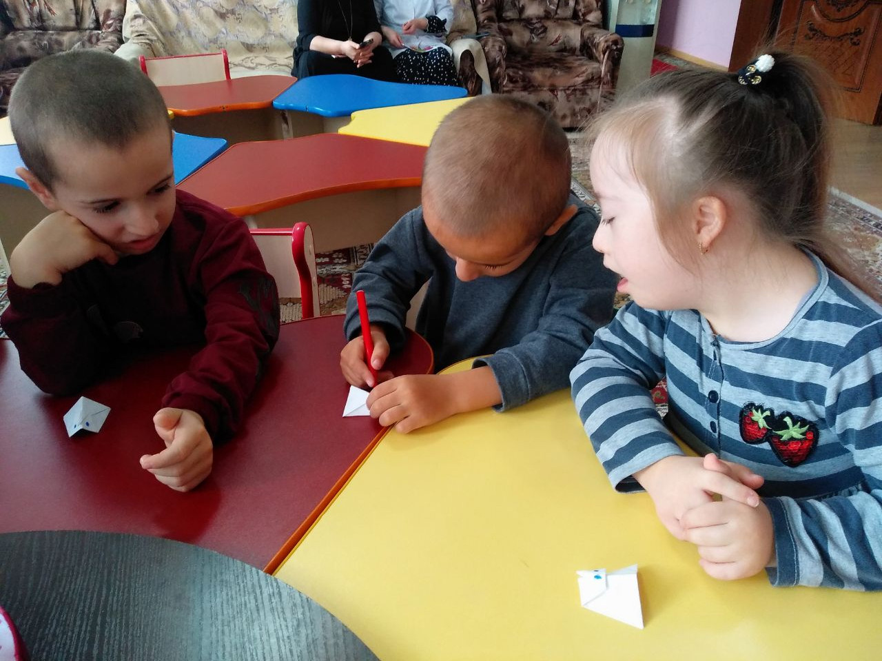Складывание разных фигурок из бумаги вызывает у ребятишек неподдельный восторг. Для детей важен не только интересный процесс, но и конечный результат, когда из простого листа бумаги рождается необычная поделка. Наши дети с этой работой справились отлично.