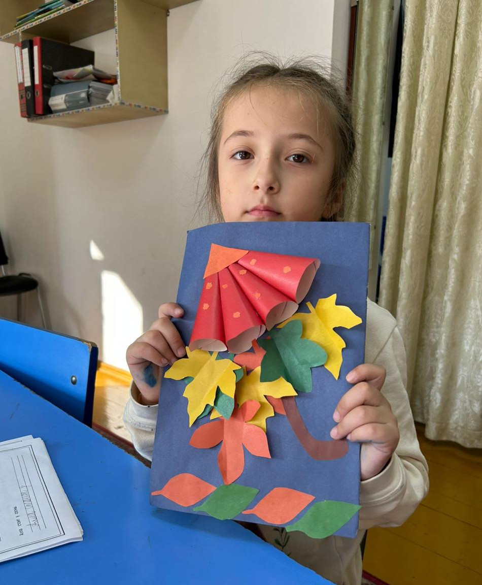 Воспитатель Саният Маметханова совместно с несовершеннолетними изготовили осенние композиции.??
