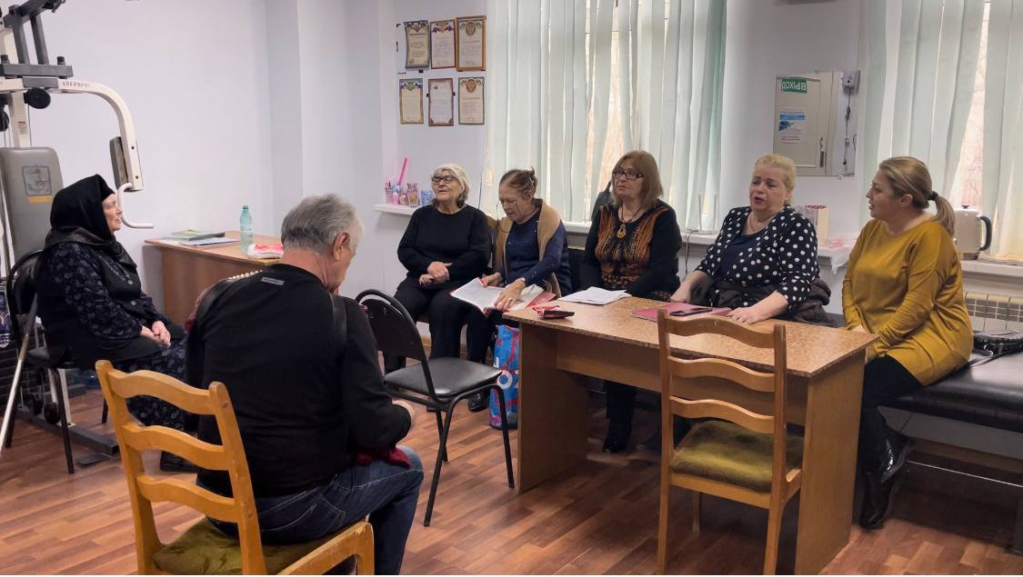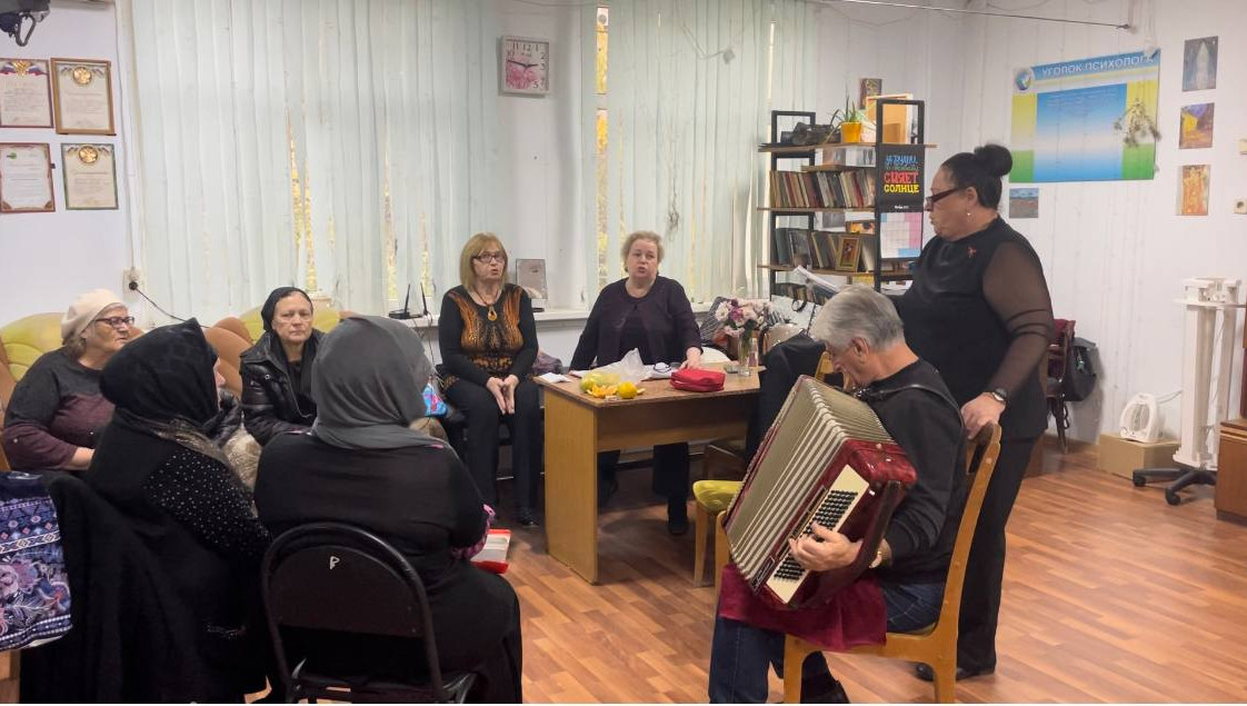 Подопечные хор «Ветеран» отделения граждан пожилого возраста и инвалидов в полустационаре проводят досуг.