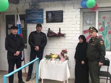 Психолог отделения социального обслуживания на даму детей и семей с детьми Шихшабекова М приняла участие в открытии мемориальной доски памяти выпускнику МКОУ «Кичигамринской СОШ «,погибшего при исполнении воинского долга в СВО на Украине Багаматову Арсену Нурисламовичу.