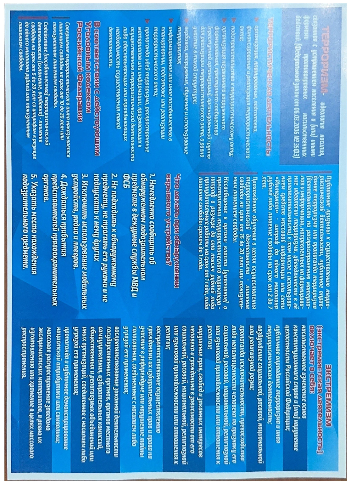 6. Не допускать распространения непроверенной информации о совершении действий, создающих непосредственную угрозу террористического акта.