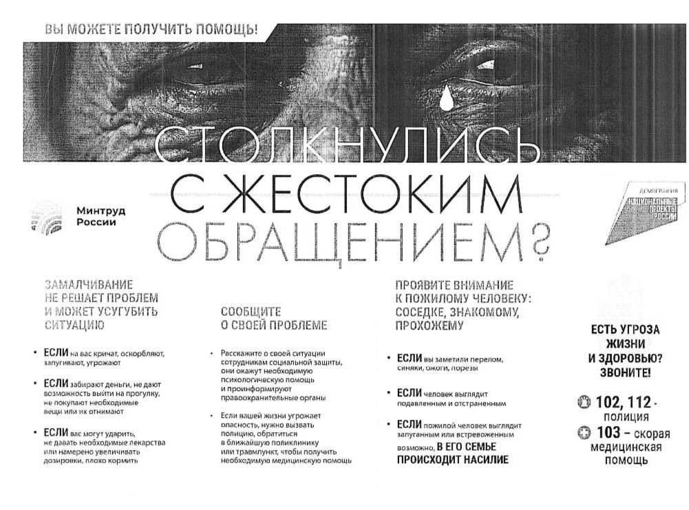 Памятка по предупреждению жестокого обращения с пожилыми людьми.