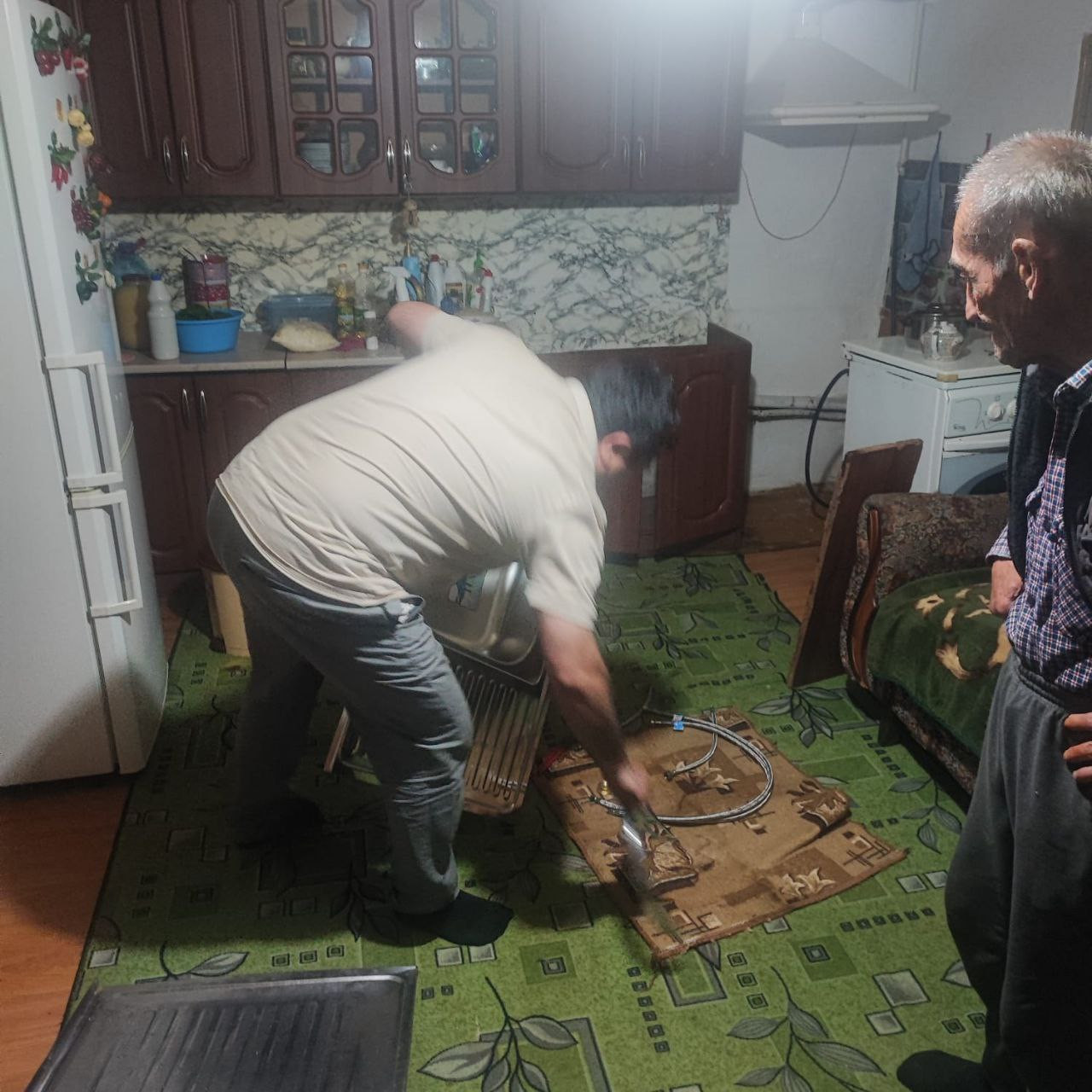 Социальный работник отделения социального обслуживания на дому пожилых граждан и инвалидов #5 Рустамов Алимирзе оказывает социально-бытовые услуги своим подопечным.