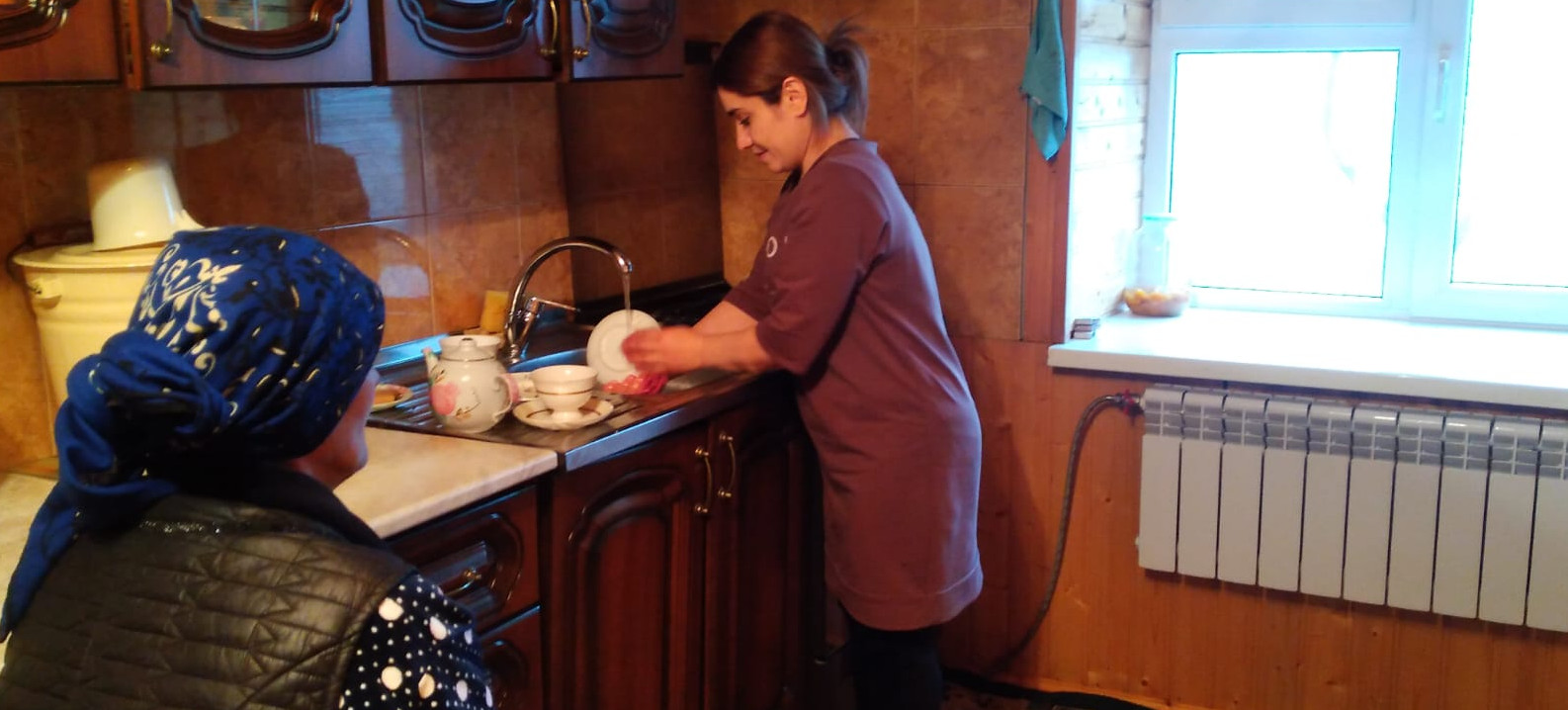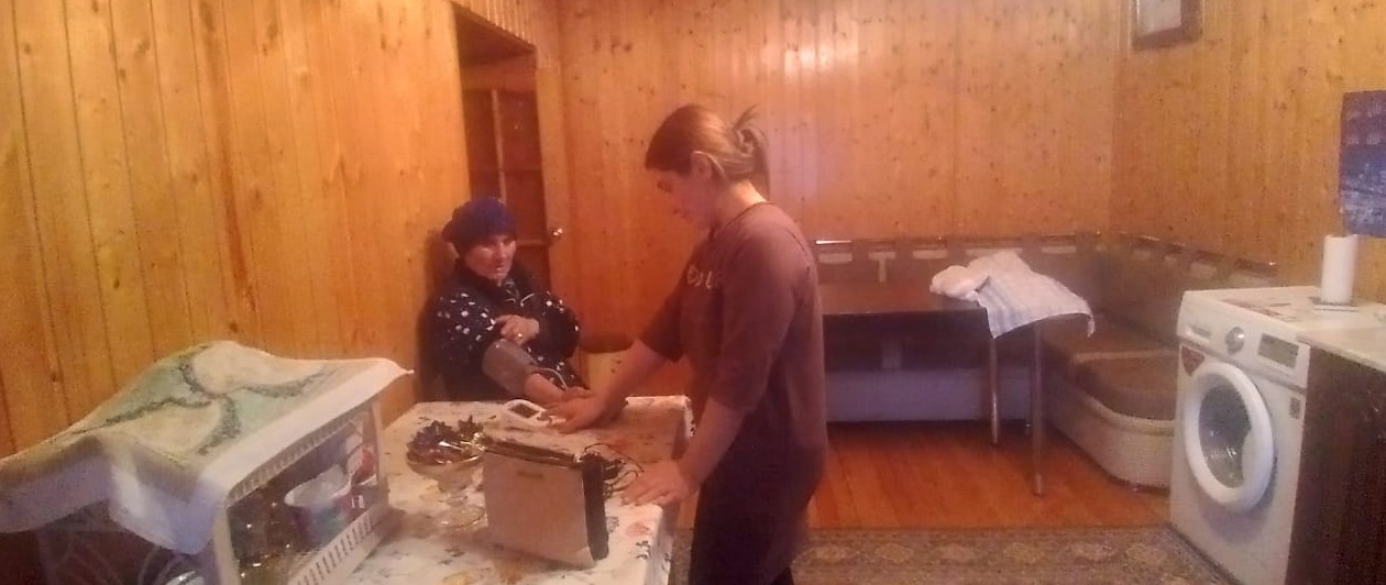 Социальный работник отделения социального обслуживания на дому Раиса Баширова проводит очередной патронаж своей подопечной. Оказаны социально-бытовые и социально-медицинские услуги.