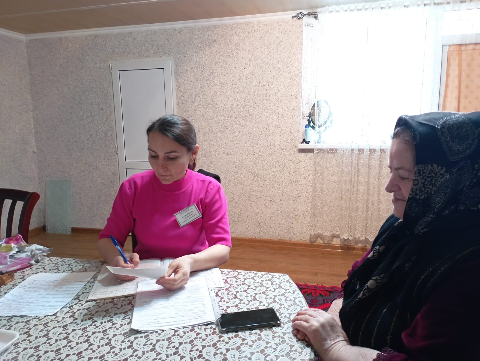 Специалисты отделения социального обслуживания на дому граждан пожилого возраста и инвалидов, Алиева Раисат и Бибулатова Марьям, посетили подопечных соц работницы Джабраиловой Бурлият, проверили качество оказываемых соц. услуг