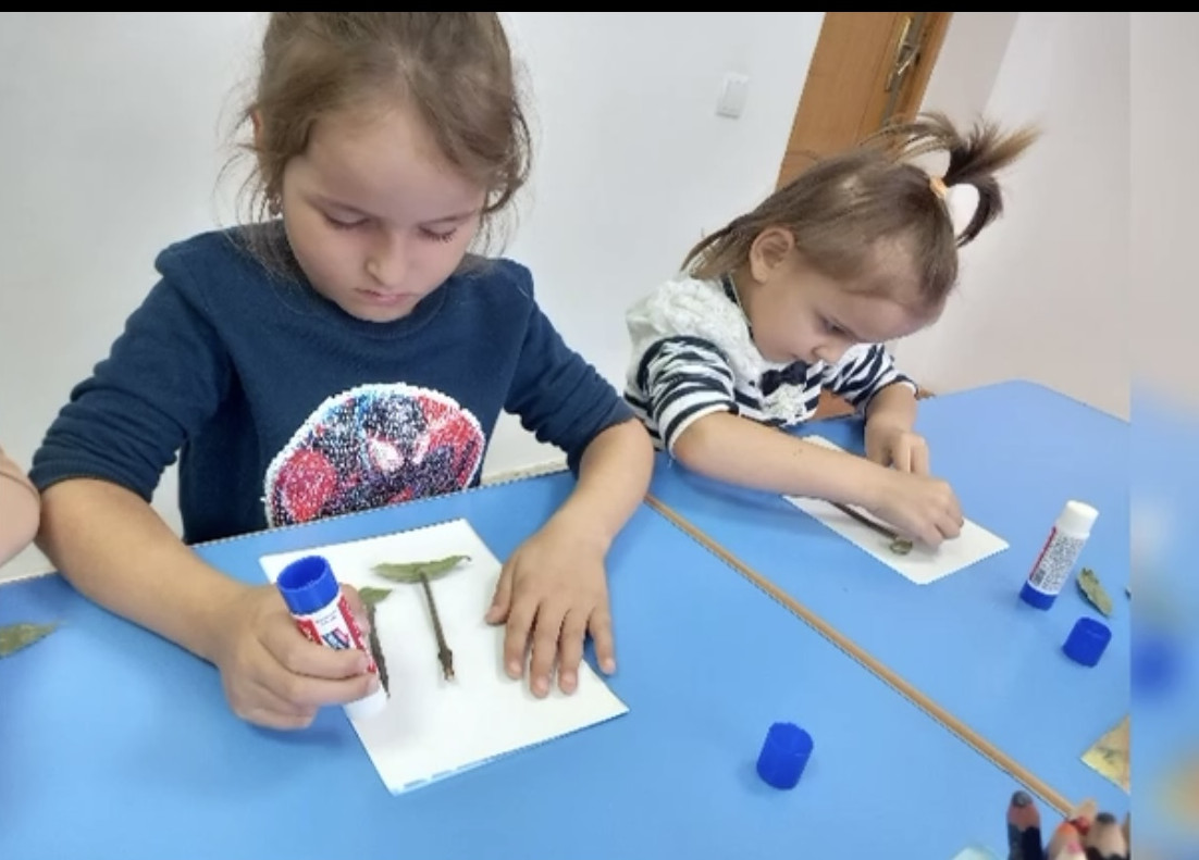 Воспитатель Муртазалиева Л.О. провела кружок " Почемучка", поделка из листьев " Жираф".