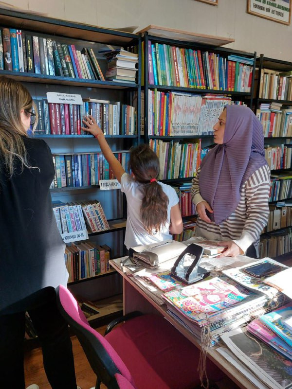 Социальный педагог Фарида Абдуева и заведующий дневного отдела детей и семей с детьми Габибат Кандалаева организовали поход с детьми в Лакскую районную детскую библиотеку.