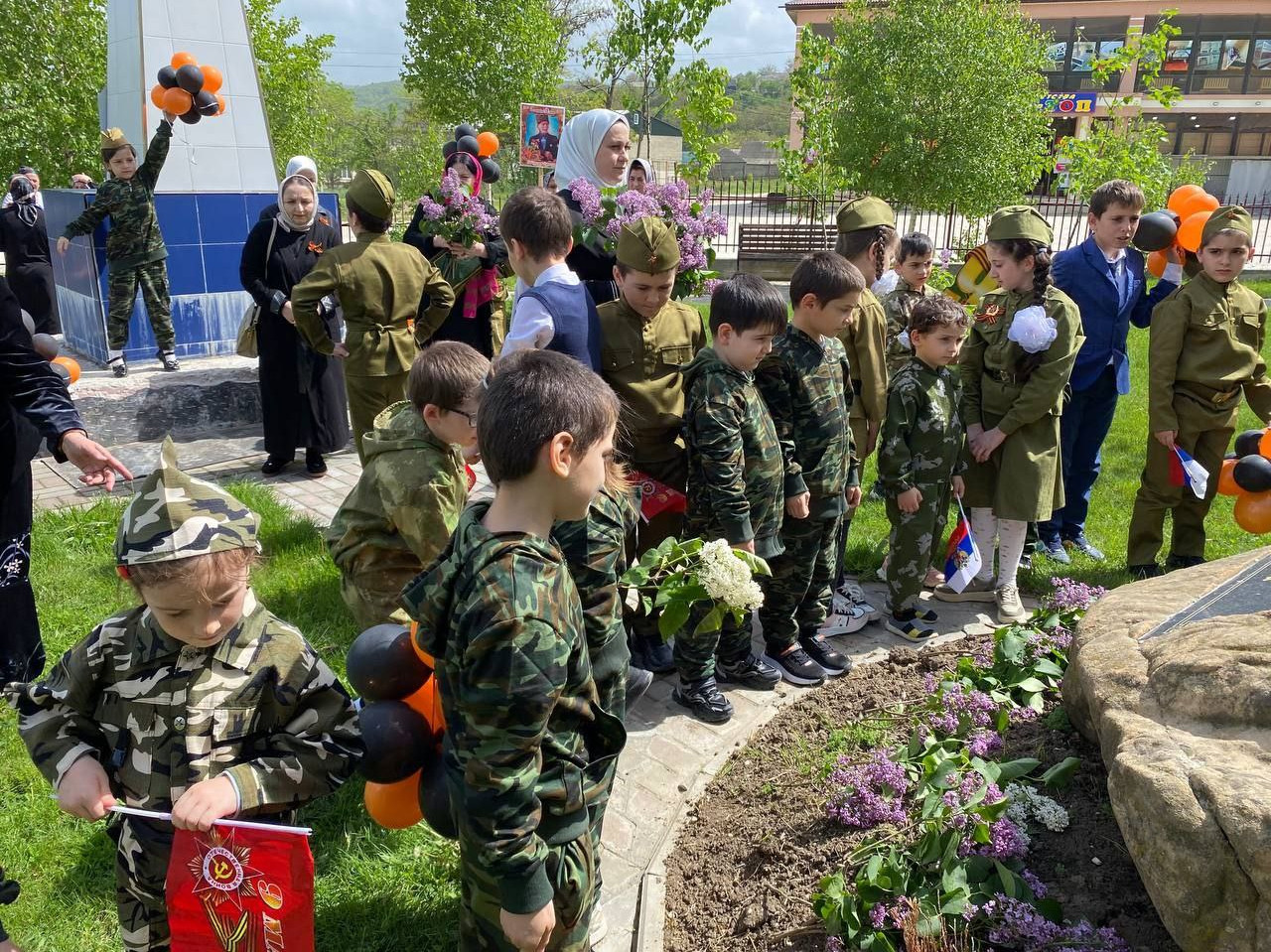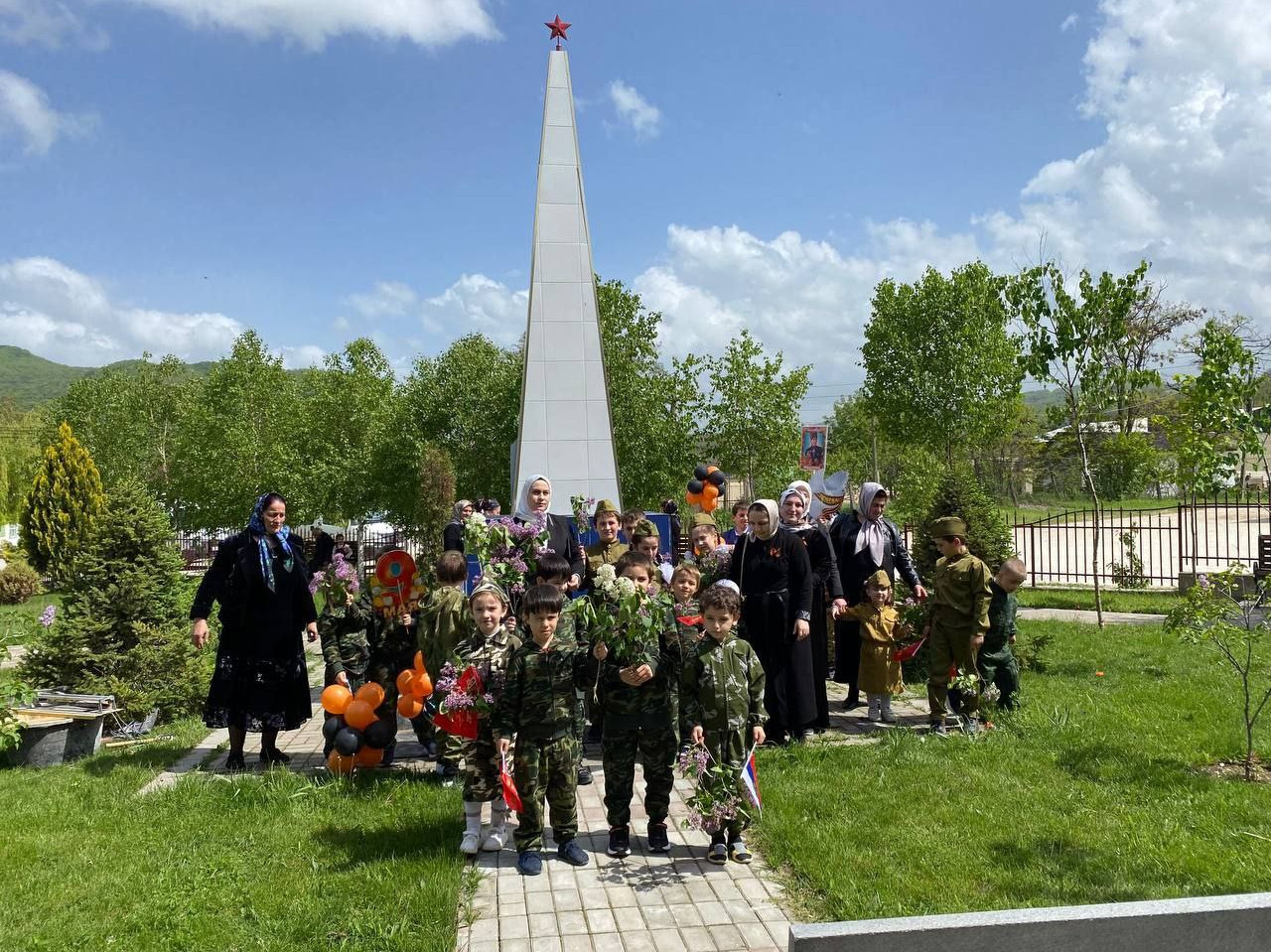 Мальчишки и девчонки пришли в этот день нарядные, на груди развивались Георгиевские ленточки, в руках пестрели цветы и флажки. Погода тоже не подвела: ярко светило солнышко, пели птицы. Дети были воодушевлены и горды тем, что стали причастны к такому ответственному и почётному мероприятию.