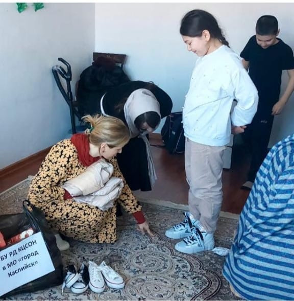 В Каспийском комплексном центре социального обслуживания населения на социальном сопровождении находится многодетная семья участника специальной военной операции Алибега Казанбиева. На днях специалисты отделения социального обслуживания на дому детей и семей с детьми посетили эту семью, провели беседу с родителями и детьми, поинтересовались их проблемами и нуждами. Семье была оказана материальная помощь в виде продуктового набора, новой одежды и детской обуви.