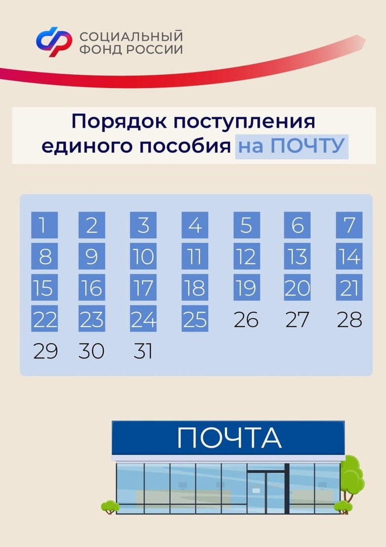 В дальнейшем средства перечисляются с 1-го по 25-ое число месяца, следующего за месяцем, за который выплачивается пособие.